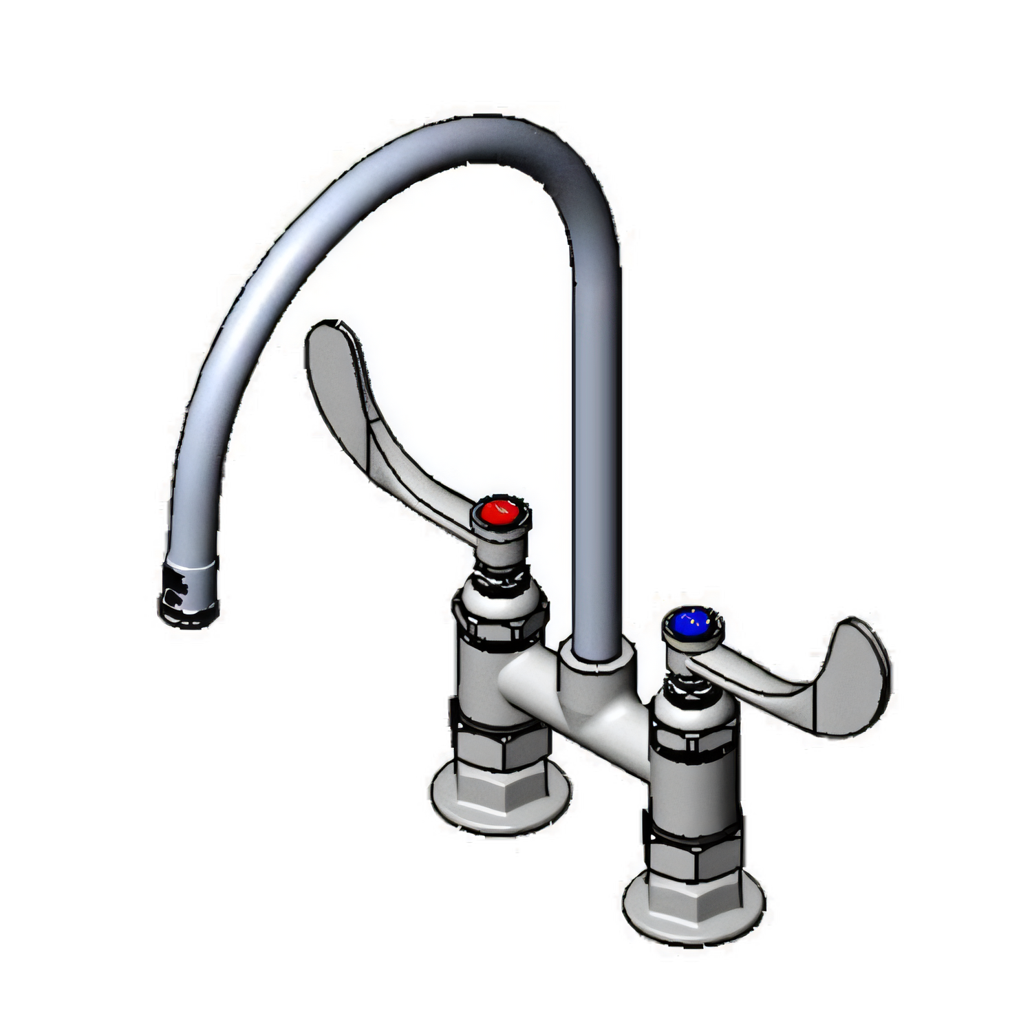 Surgical Faucet, deck mount, 4" c/c, 129X gooseneck, 4" wrist action handles, quarter-turn Eterna cartridges, low lead, ADA Compliant