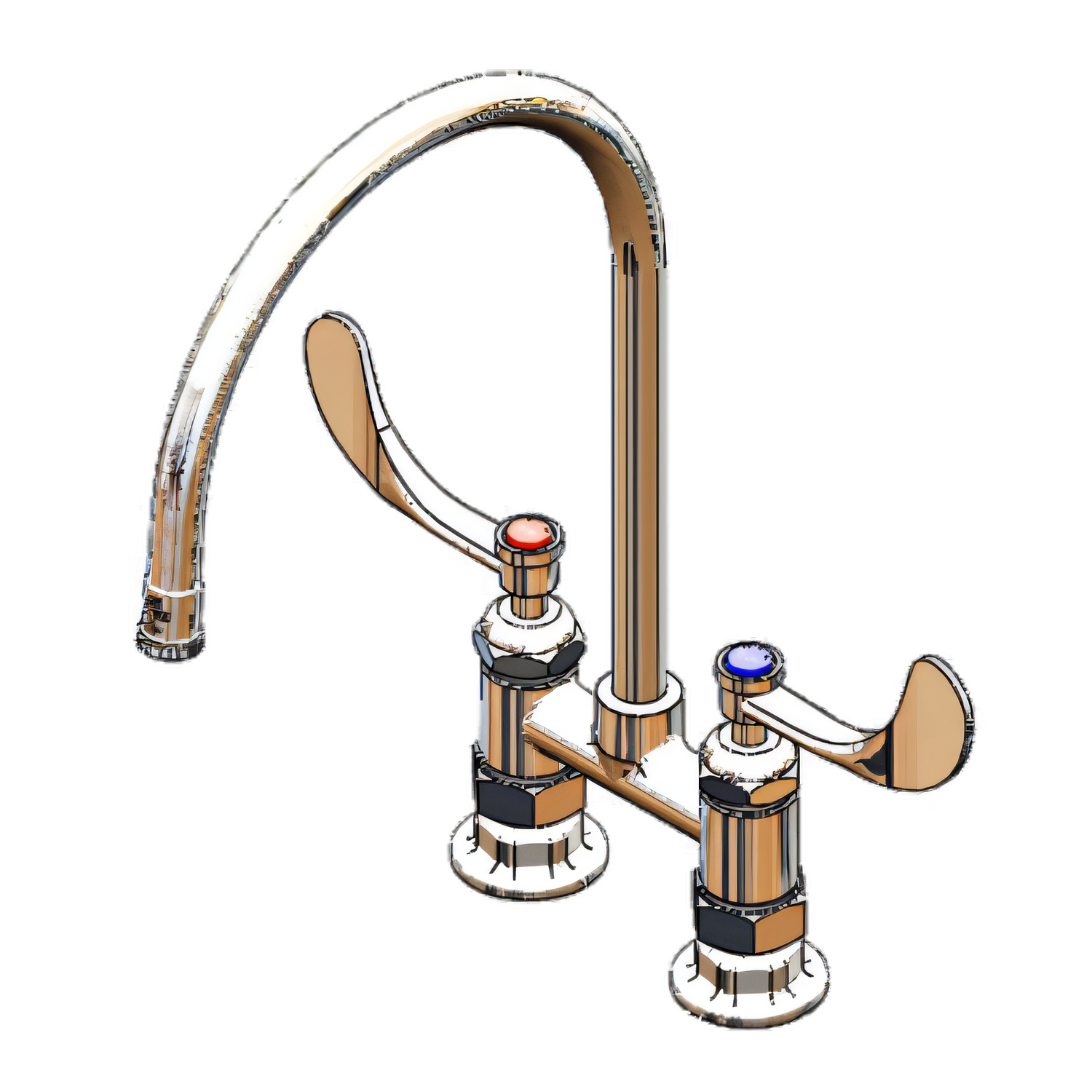 Surgical Faucet with ceramas, 4" deck mount, 129X gooseneck, 4" wrist action handles, quarter-turn Cerama cartridges, low lead, ADA Compliant