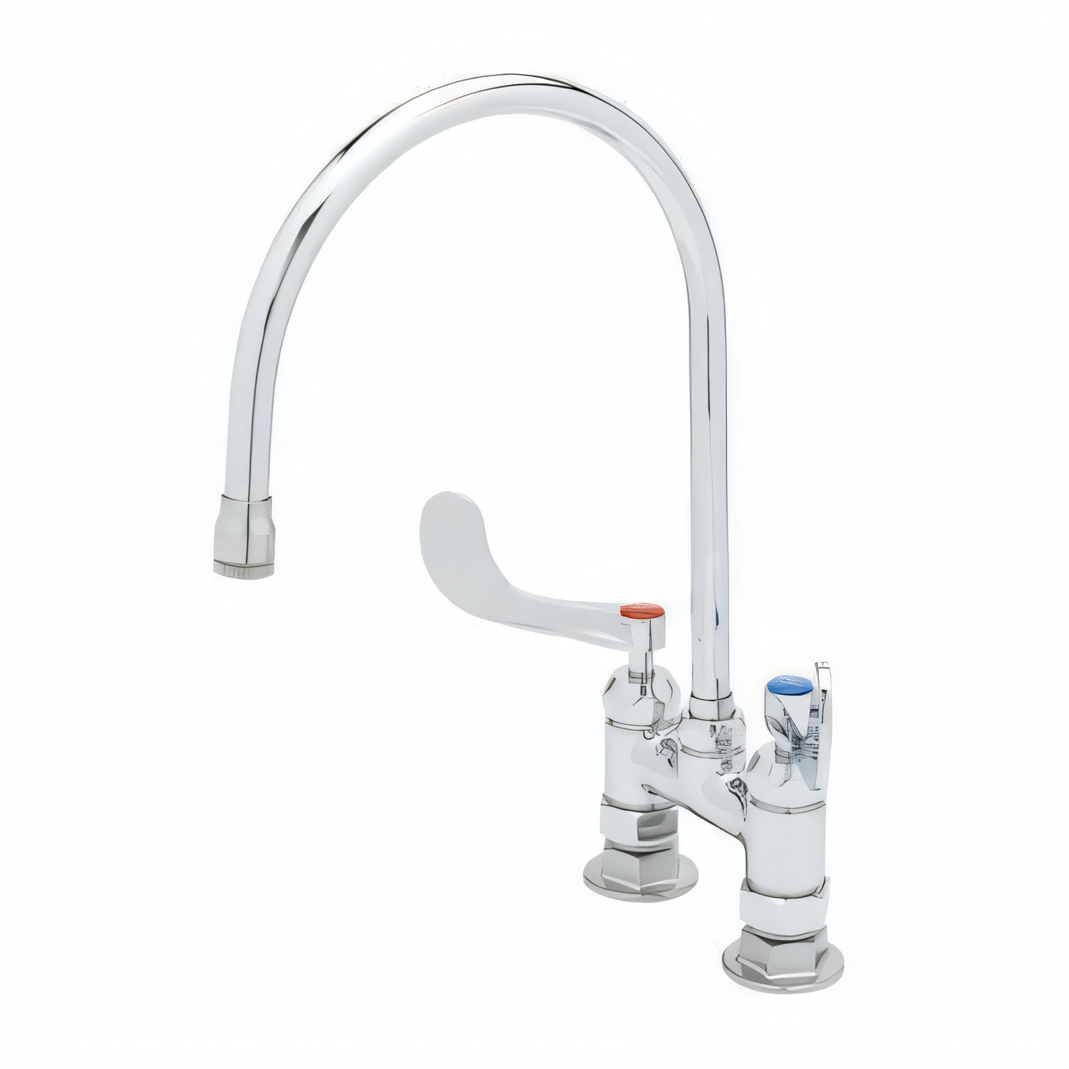 Pantry Faucet, double, deck mount, 4" adjustable centers, 7-3/4" swivel gooseneck spout with Series 2 stream regulator outlet (includes lock washer to convert to rigid), 4" wrist action handles with color coded indexes, quarter-turn Cerama cartridges with check valves, polished chrome plated body, 1/2" NPT female inlets, low lead, cCSAus, ADA Compliant
