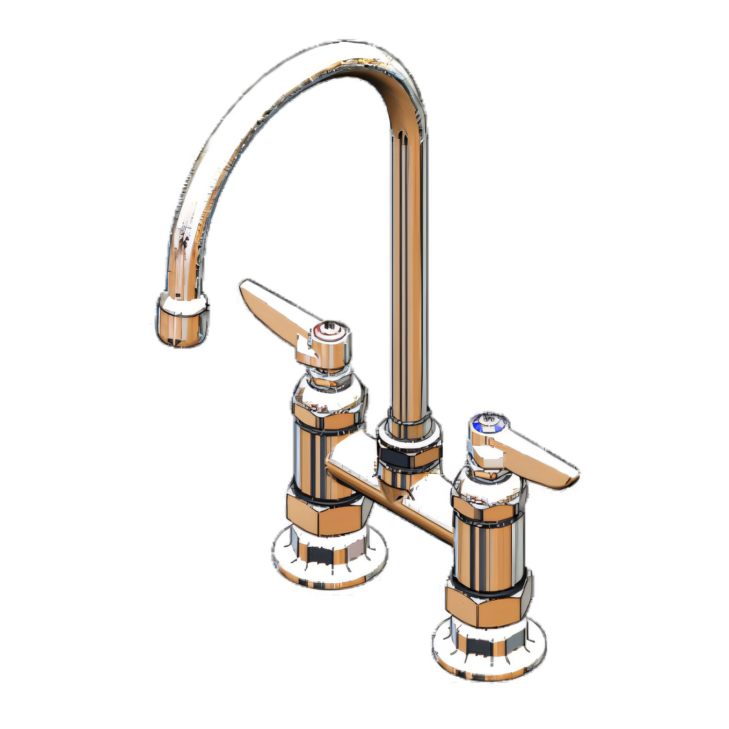 Mixing Faucet, deck mount, 4" adjustable centers, 5-1/2" swivel gooseneck spout with 2.2 GPM Series 1 stream regulator outlet (includes lock washer to convert to rigid), lever handles with color coded indexes, quarter turn Eterna cartridges with spring checks, polished chrome plated brass body, 1/2" NPT, low lead, cCSAus, ADA Compliant