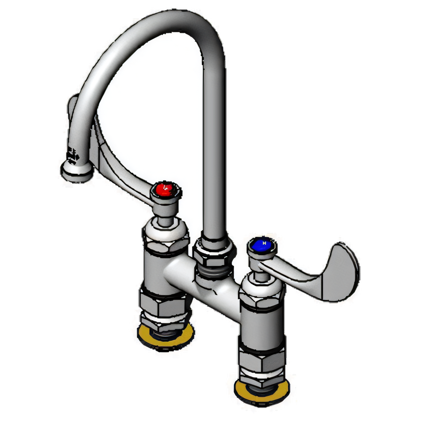 Mixing Faucet, deck mount, 4" centers, 5-3/4" swivel gooseneck spout with Series 1 stream regulator outlet (includes lock washer to convert to rigid), 4" wrist handles with color coded indexes, quarter-turn Cerama cartridges with check valves, polished chrome plated brass body, 1/2" NPT male inlets, low lead, cCSAus, ADA Compliant