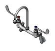 Surgical Sink Mixing Faucet, wall mount, 8" adjustable centers, quarter-turn Eterna cartridges with spring checks, 6" wrist action handles with color coded indexes, 5-3/4" swivel/rigid gooseneck with (B-0103-01) rosespray outlet, includes lock washer for rigid application, built-in service stops, polished chrome-plated brass faucet body, 1/2" NPT female adjustable arm inlets, CSA, ADA Compliant