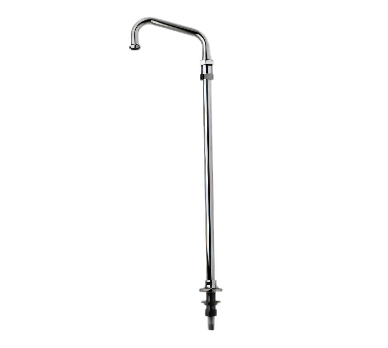 Elevated Swing Nozzle, deck mount, 18" swing nozzle, 3/8" IPS chrome-plated riser 24-3/4"H, 1/4" IPS union tailpiece connection