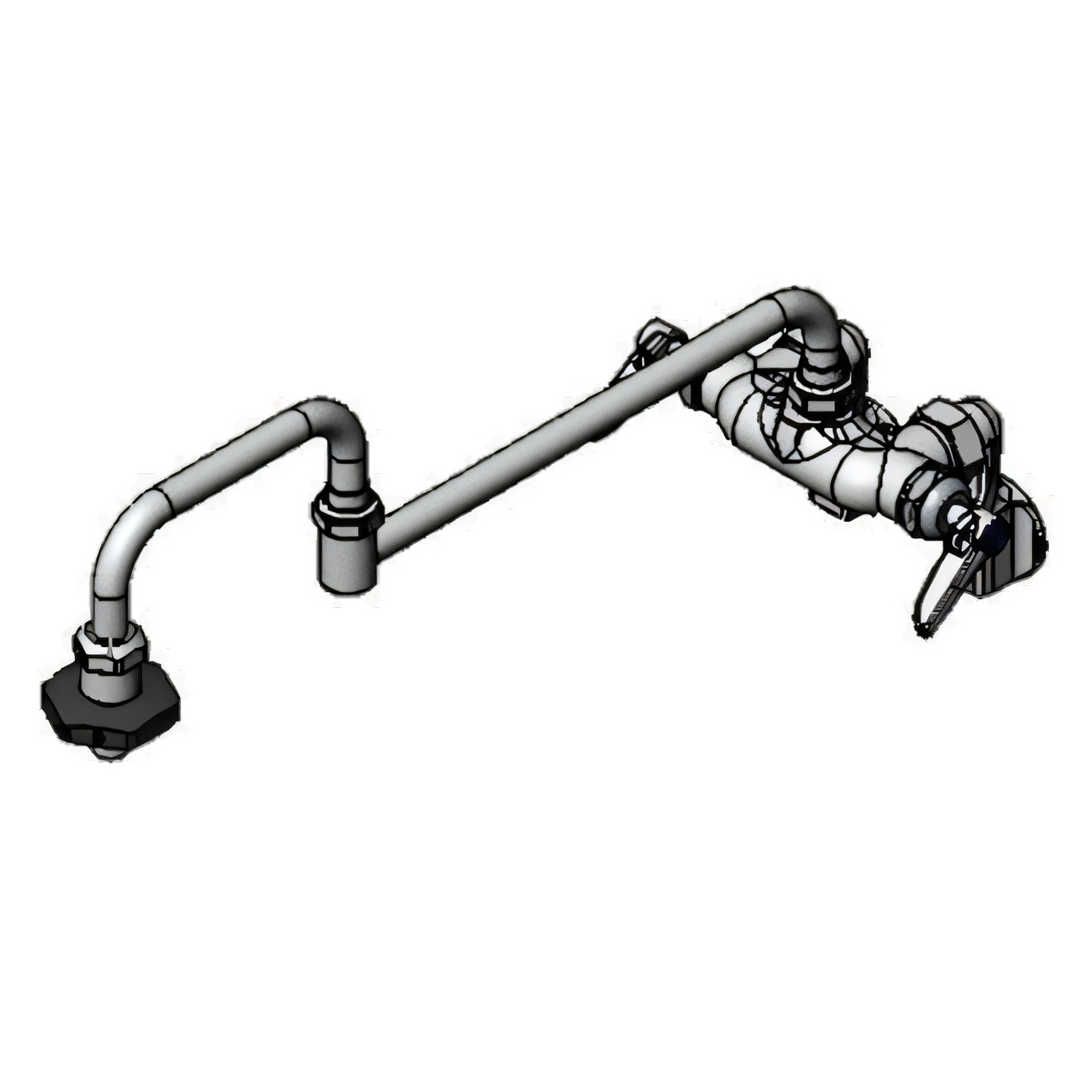 Pantry Faucet, double, wall mount, adjustable centers, 18" double joint swing nozzle, heat-resistant lever handles, 1/2" NPT, quarter-turn Cerama cartridges, low lead, ADA Compliant