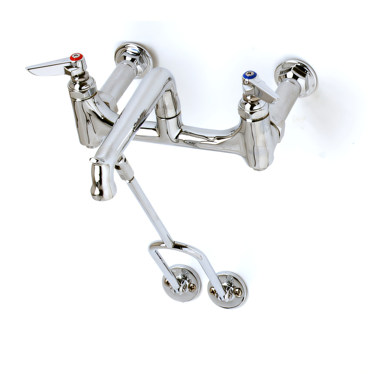 Service Sink Faucet, 8" centers, 5-1/4" clearance wall to center line of faucet, 12-1/4" from wall to center of outlet, built in screwdriver stops, polished chrome-plated finish, bottom support wall brace