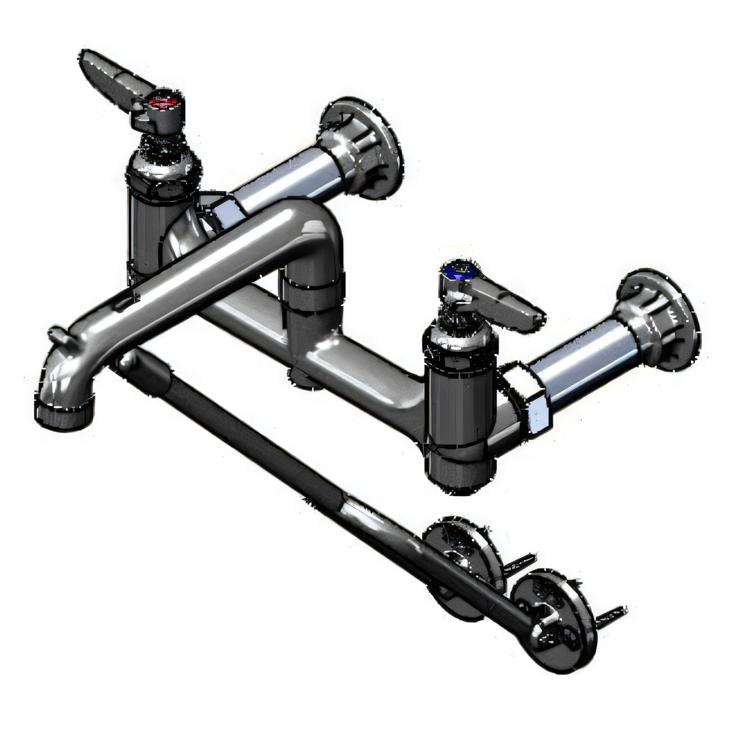 Service Sink Faucet, 8" centers, 5-1/4" clearance wall to center line of faucet, 12-1/4" from wall to center of outlet, built in screwdriver stops, rough chrome-plated finish, bottom support wall brace