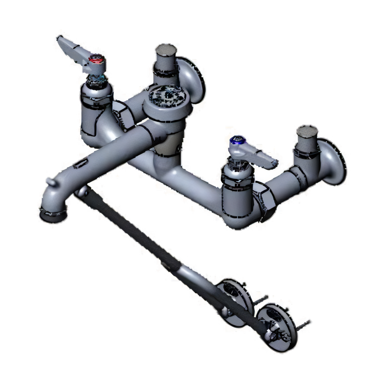 Service Sink Faucet, 8" centers-adjustable from 7-3/4" to 8-1/4", 5-1/8" clearance wall to center line of faucet, 11-5/8" from wall to center of outlet, polished chrome-plated finish, with integral stops
