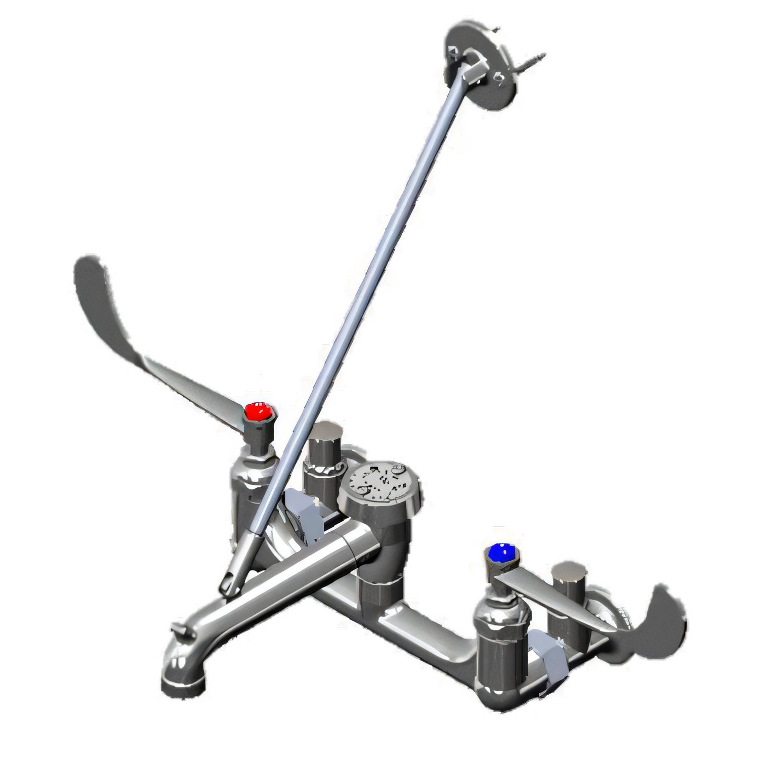 Service Sink Faucet, 8" centers, 2-3/8" clearance from wall to center line of faucet, 9-7/8" from wall to center of outlet, polished chrome-plated finish, 6" wrist action handle, vacuum breaker nozzle with 3/4" garden hose thread & pail hook, 00JJ stops