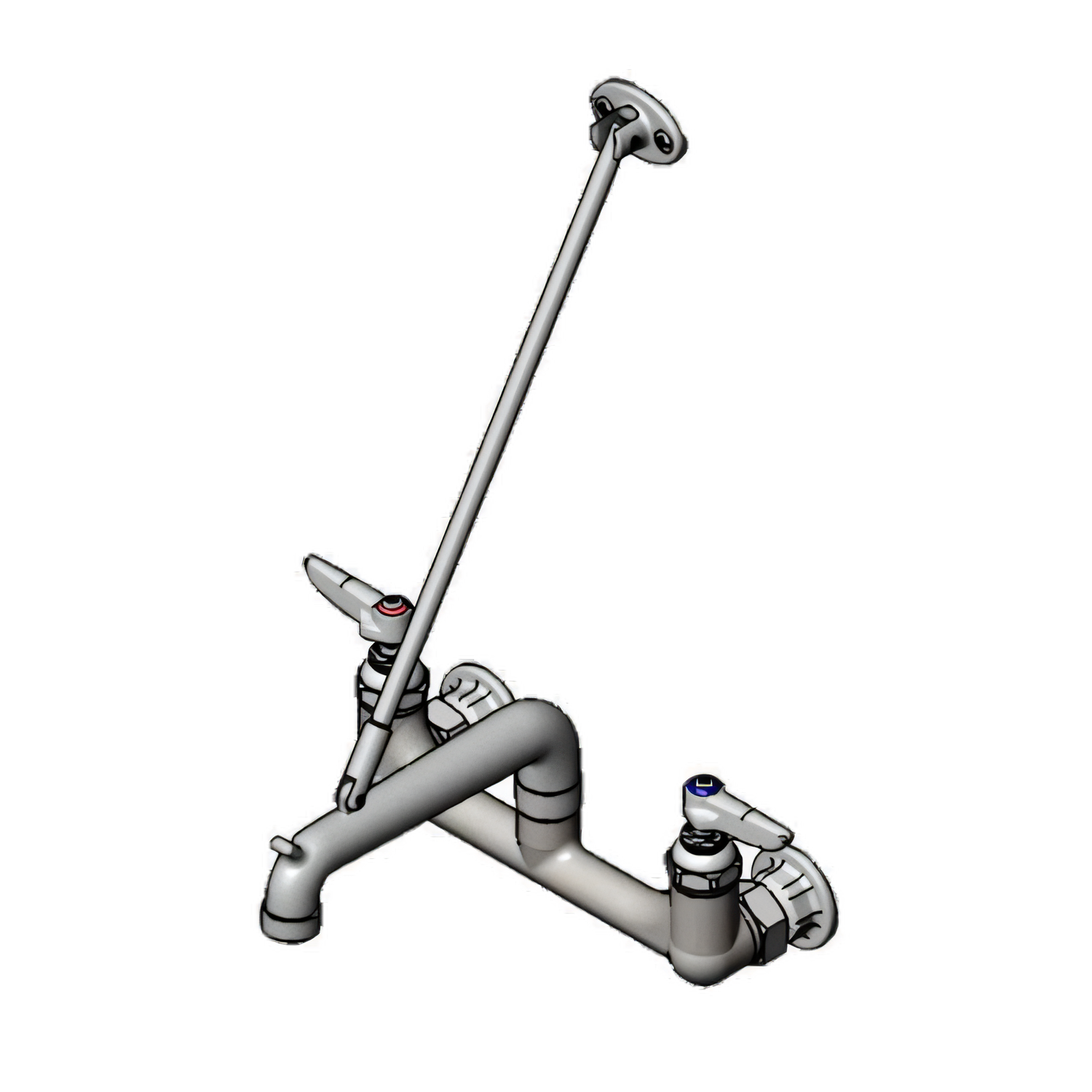 Service Sink Faucet, 8" centers, 9" from back of inlets to center of outlet, brace adjustable for mounting up to 2-1/2" behind inlets, polished chrome-plated finish, top support wall brace