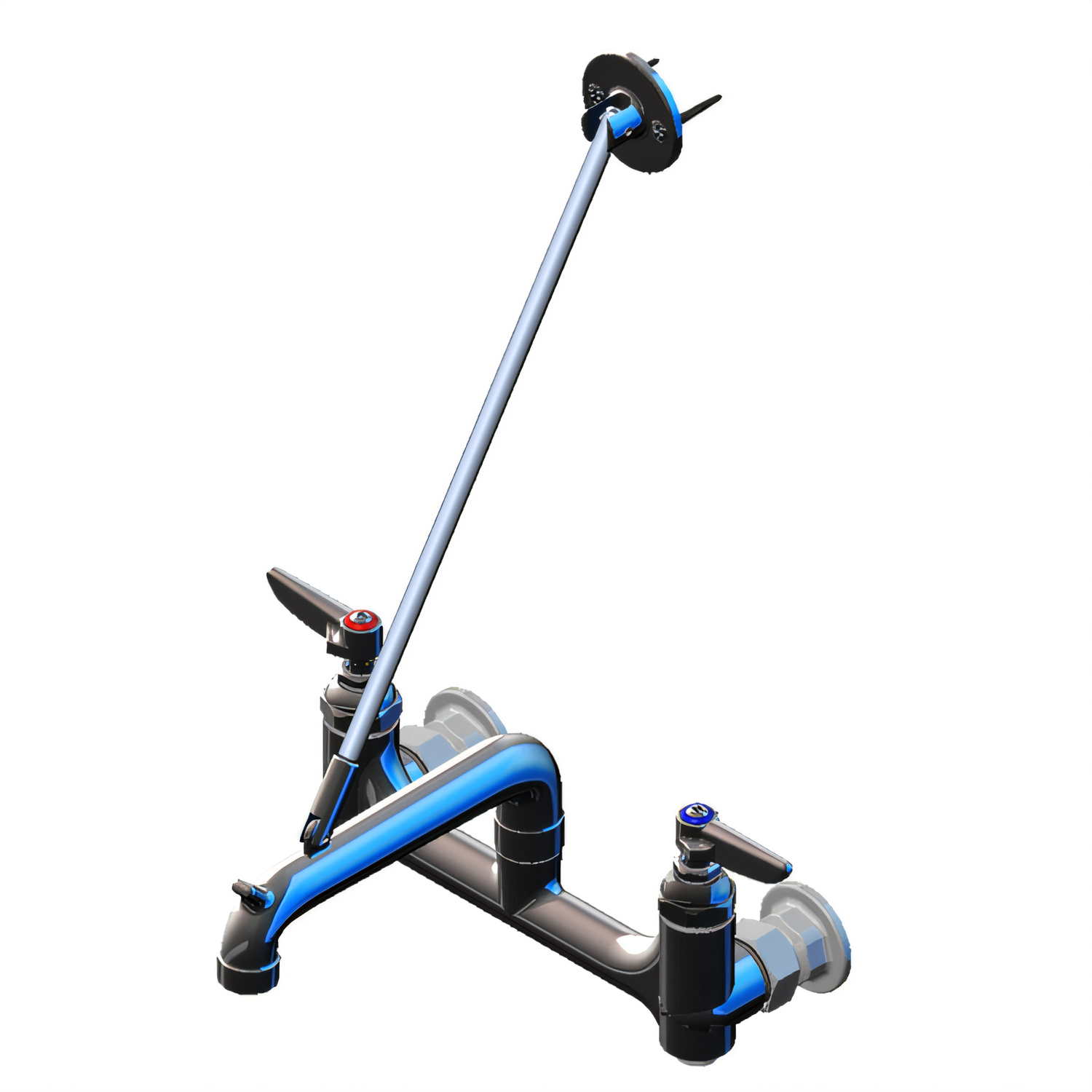 Service Sink Faucet, 8" centers, 9" from back of inlets to center of outlet, brace adjustable for mounting up to 2-1/2" behind inlets, rough chrome-plated finish, top support wall brace