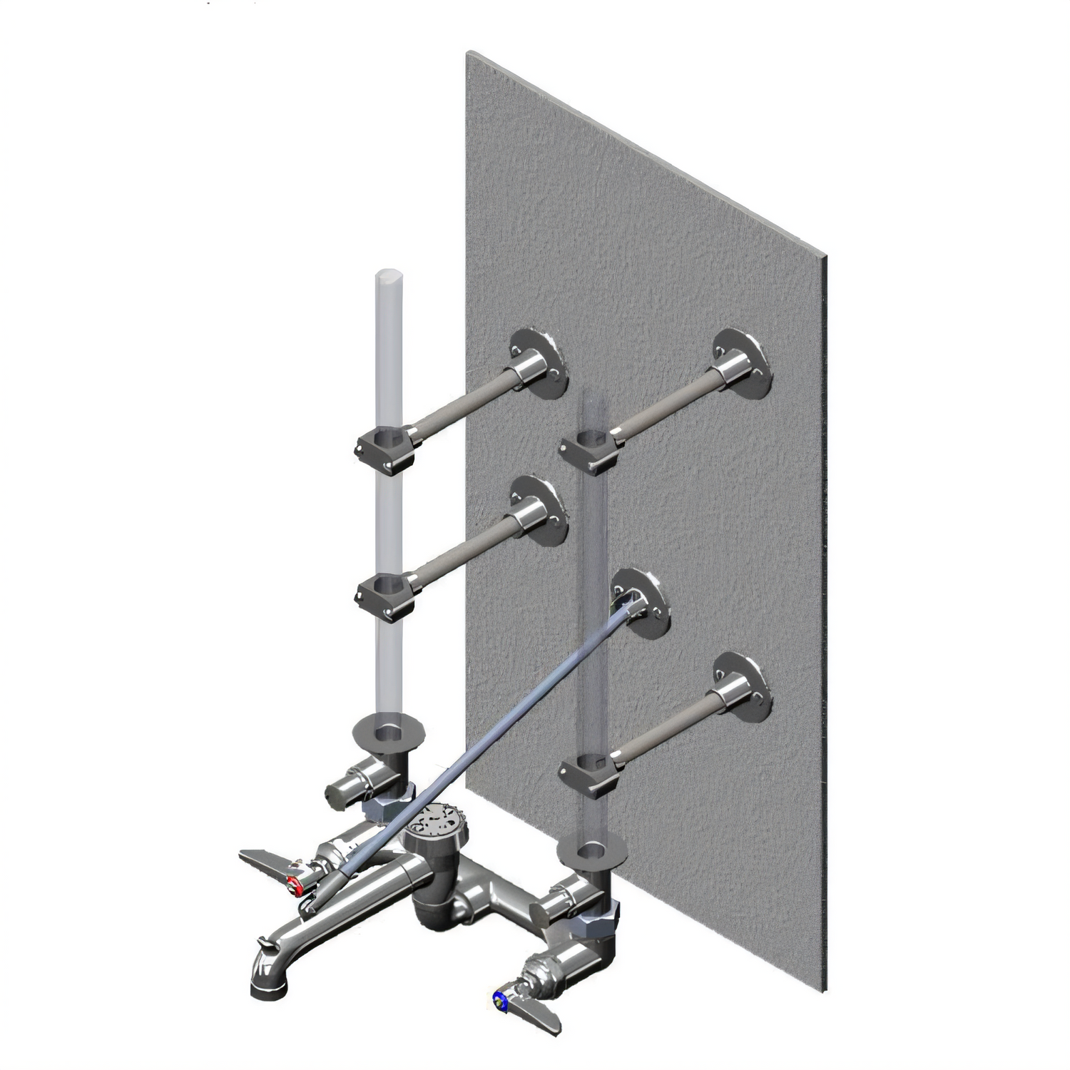 Ceiling Supply Service Sink Faucet, 8" centers, OOJJ stops, wall brace assembly, lever faucet handles, vacuum breaker
