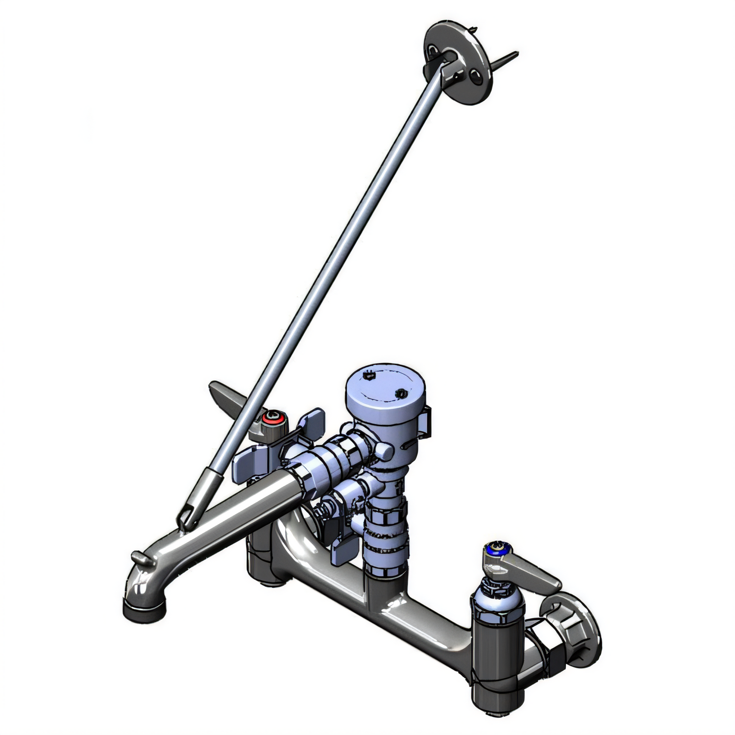 Service Sink Faucet, 8" wall mount, built-in stops, B-0963 vacuum breaker