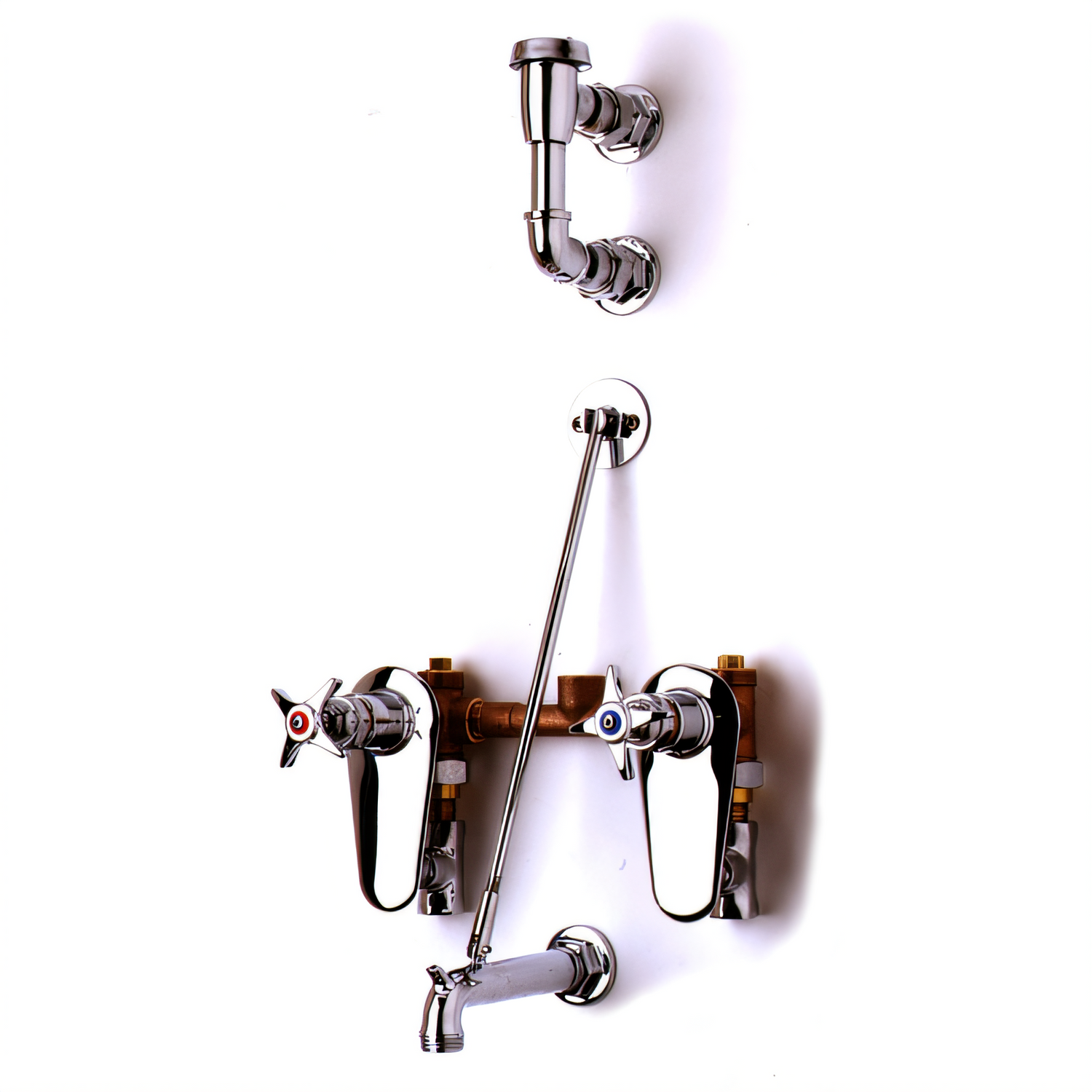 Service Sink Fitting, concealed bypass mixing valves on 8" centers, roughing 2-1/2" minimum to 3-1/2" maximum center of inlets to finished wall face, braced nozzle with 3/4" garden hose thread & pail hook, without integral stops, elevated vacuum breaker