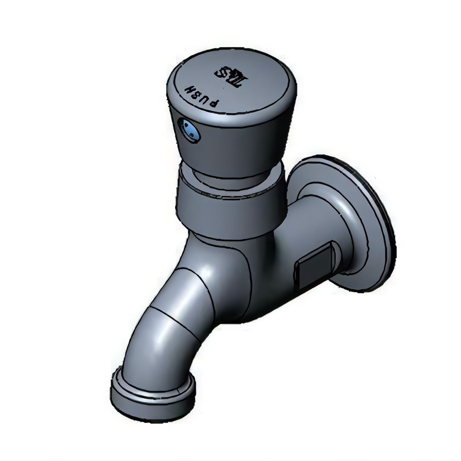 Single Sink Faucet, single hole base, single temperature, wall mount, push button cap with vandal resistant screw, plain end outlet, 1/2" NPT female inlet, chrome plated brass body & chrome plated metal handle, low lead, NSF, cCSAus, ADA Compliant