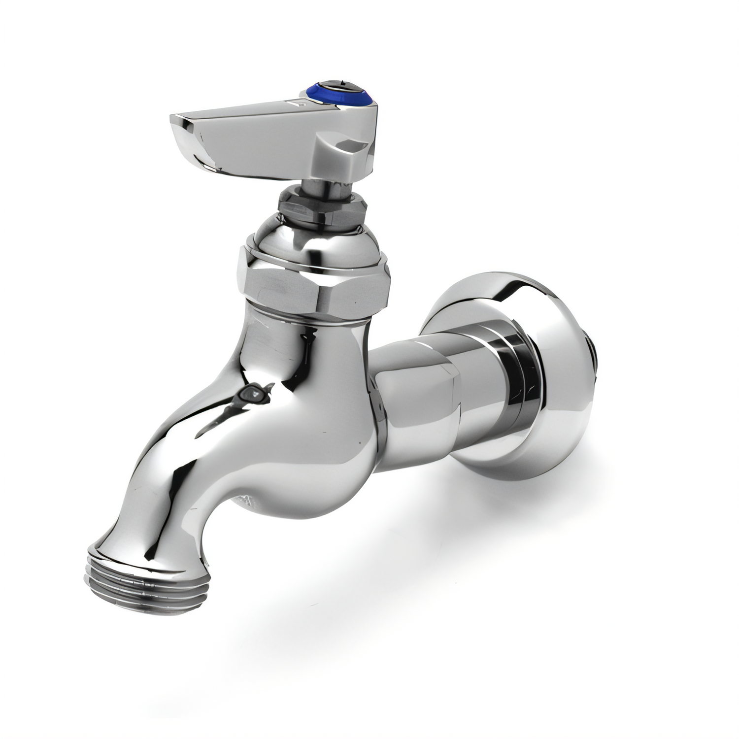 Single Sink Faucet, heavy duty, 1/2" IPS male inlet with adjustable flange, 6" inlet to center of outlet, lever handle, 3/4" hose thread outlet, "C" (or "H")