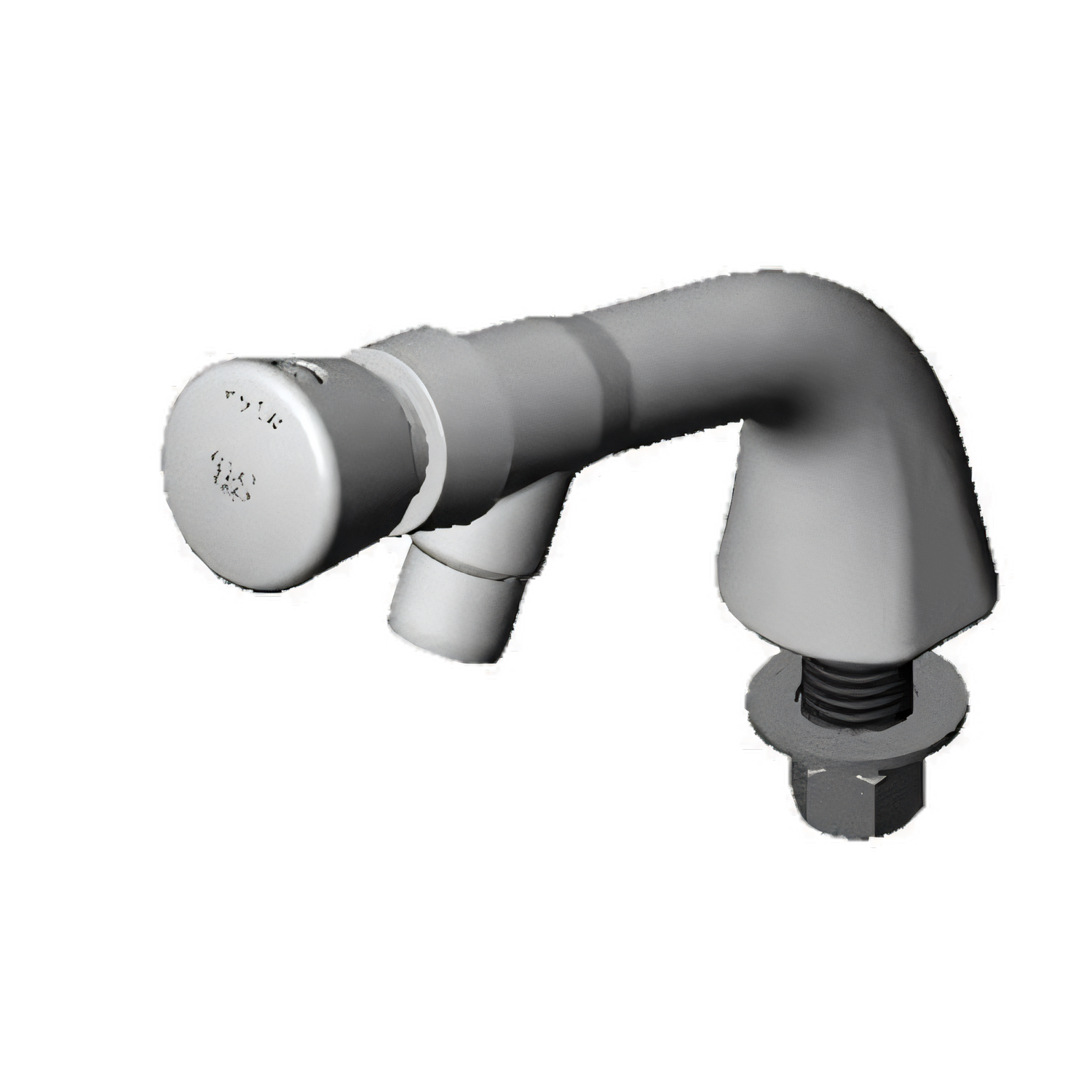 Slow Self-Closing Faucet, heavy duty, push button, 1/2" NPS threaded shank, 1/2" O.D. slip inlet, approximately 5-1/2"H, center of inlet to aerator outlet is 3-3/4", outlet 2" above deck, specify hot or cold or blank