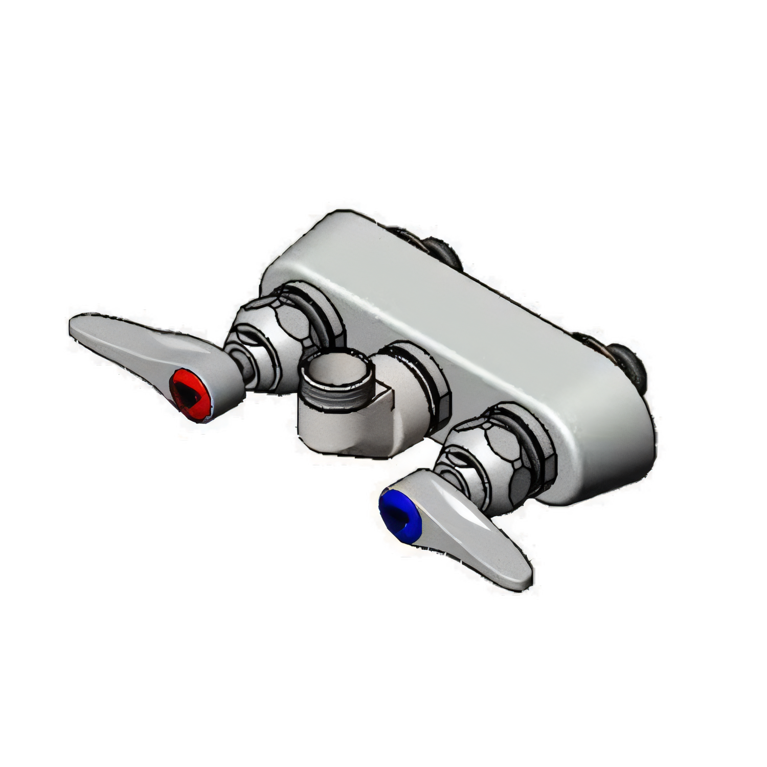 Faucet Workboard, less nozzle, splash mounted, bronze body, removable seats, 6-1/2"W x 2"H chrome-plated escutcheon, 3-1/2" centers, 1/2" NPT male inlets, quarter-turn Eterna cartridges, low lead, ADA Compliant