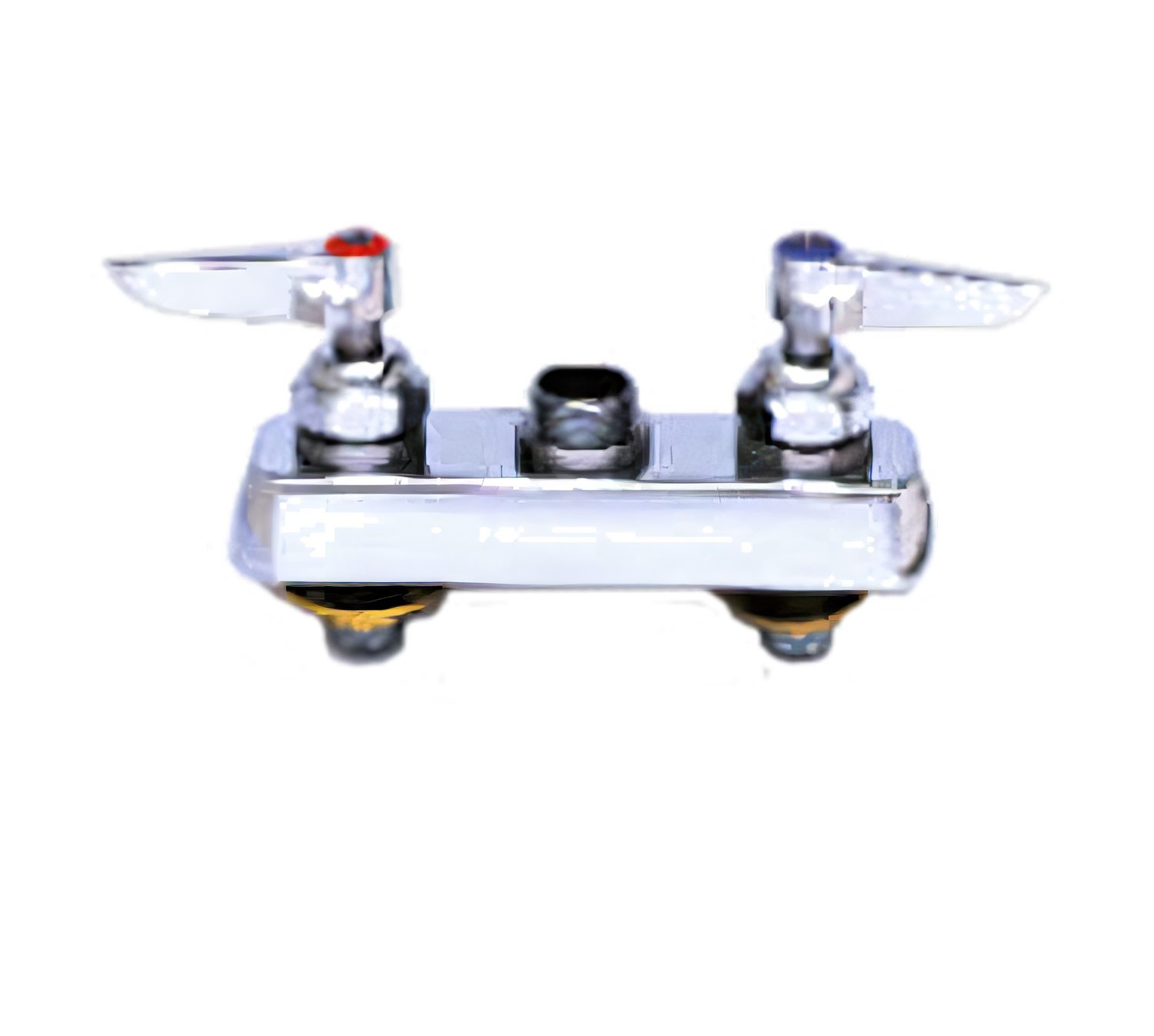 Workboard Faucet, less nozzle, deck mounted, bronze body, removable seats, 6-1/2"L x 2"W chrome-plated escutcheon, 4" centers, 1/2"NPT male shanks, 1/2" IPS thread, quarter-turn Eterna cartridges, lever handles, low lead, ADA Compliant (6 each per master pack)