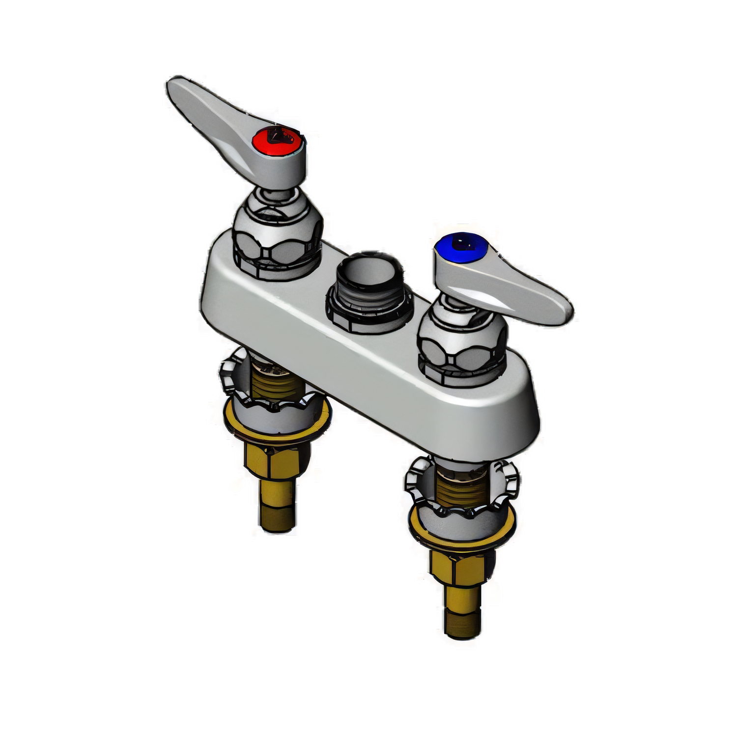 Faucet Workboard, deck mount, 4" centers, 2" shank, less nozzle, quarter-turn Eterna cartridges, lever handles, low lead, ADA Compliant