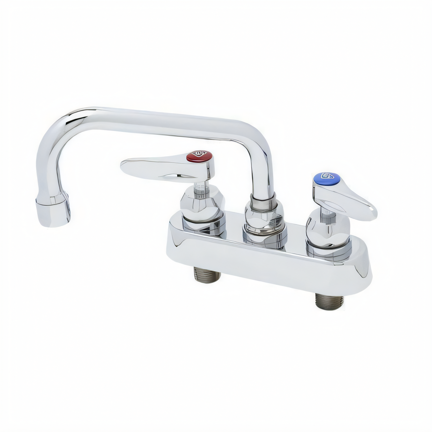 Workboard Faucet, deck mount, 4" centers, 8" swing nozzle with 2.2 GPM aerator, quarter-turn cerama cartridges with check valves, lever handles with color coded indexes, 1/2" male inlets, low lead, cCSAus, ADA Compliant, NSF (6 each per master pack)