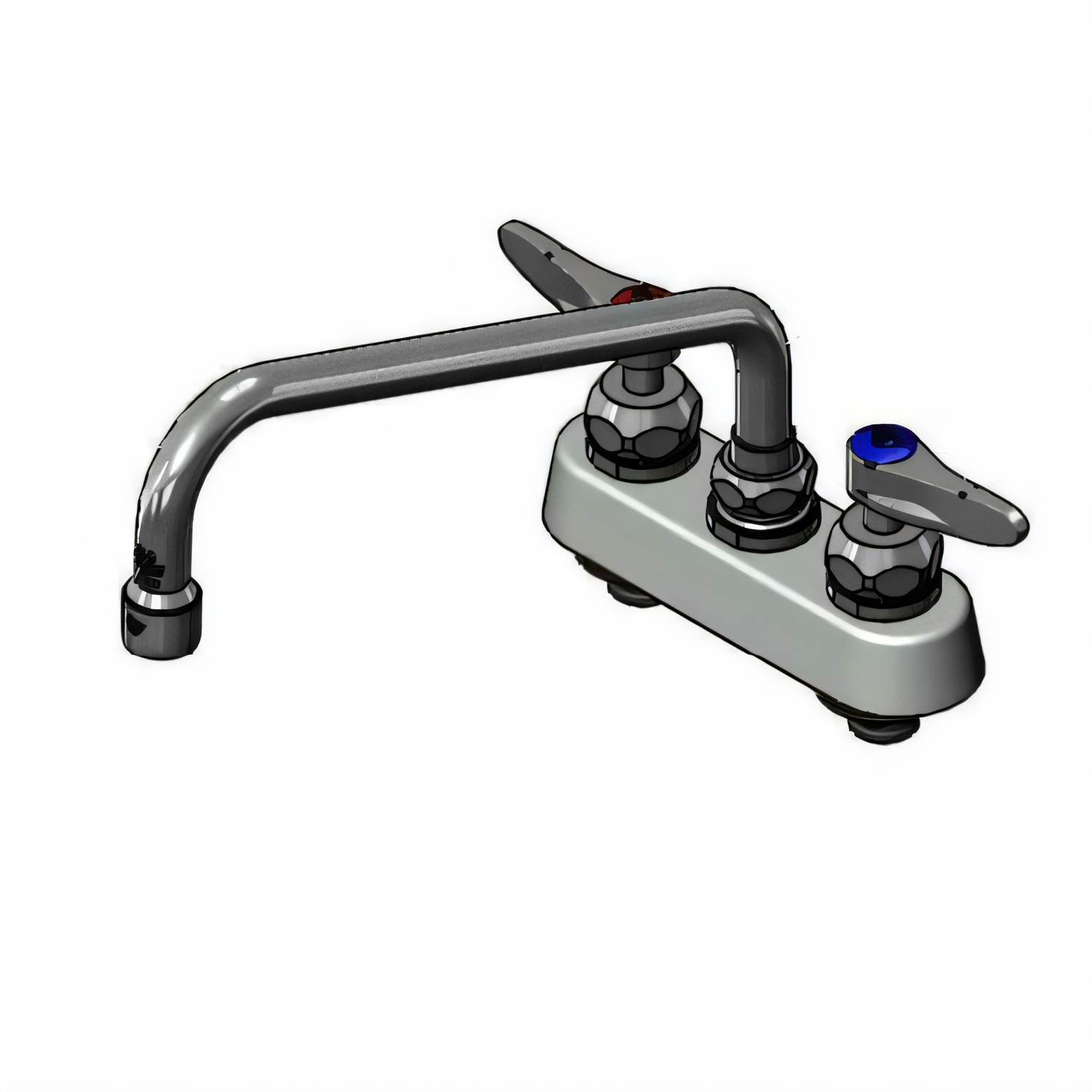 Workboard Faucet, deck mount, 4" centers, 10" swing nozzle with 2.2 GPM aerator, quarter-turn cerama cartridges with check valves, lever handles with color coded indexes, 1/2" male inlets, low lead, cCSAus, ADA Compliant, NSF