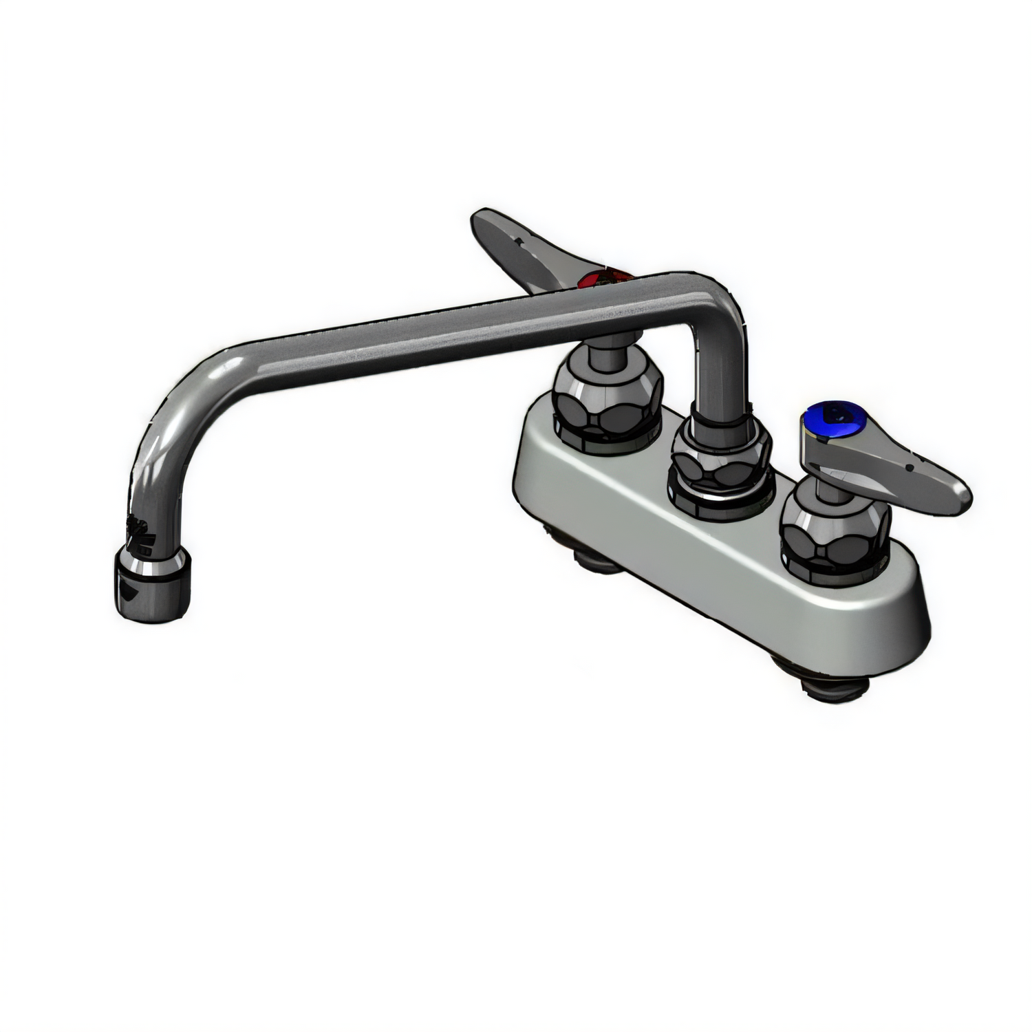 Workboard Faucet, deck mount, 4" centers, 10" swing nozzle with 2.2 GPM aerator, quarter-turn cerama cartridges with check valves, lever handles with color coded indexes, 1/2" male inlets, low lead, cCSAus, ADA Compliant, NSF (6 each per master pack)