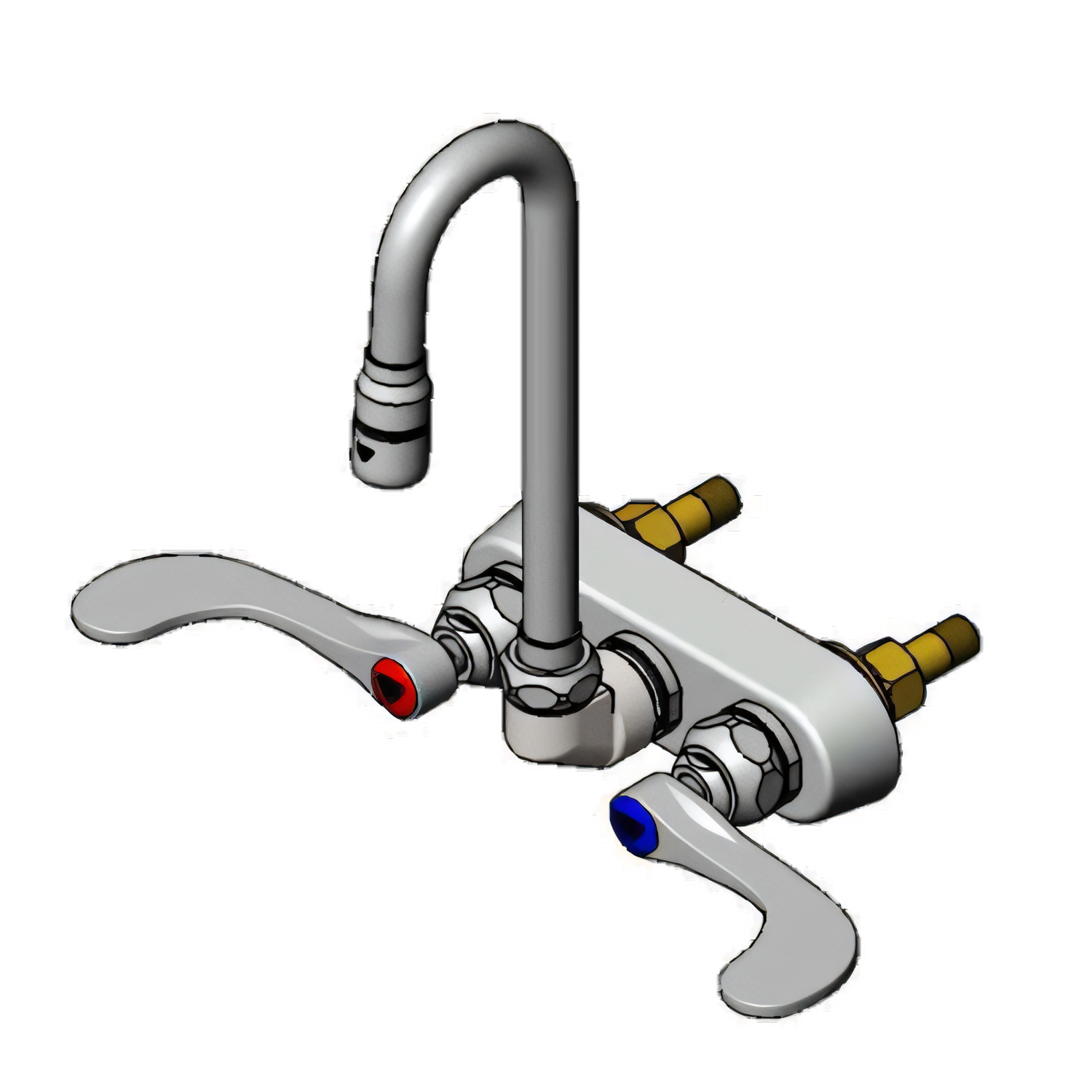 Faucet Workboard, wall mount, 4" centers, 132X gooseneck, B-WH4 handles, quarter-turn Eterna cartridges, low lead, ADA Compliant