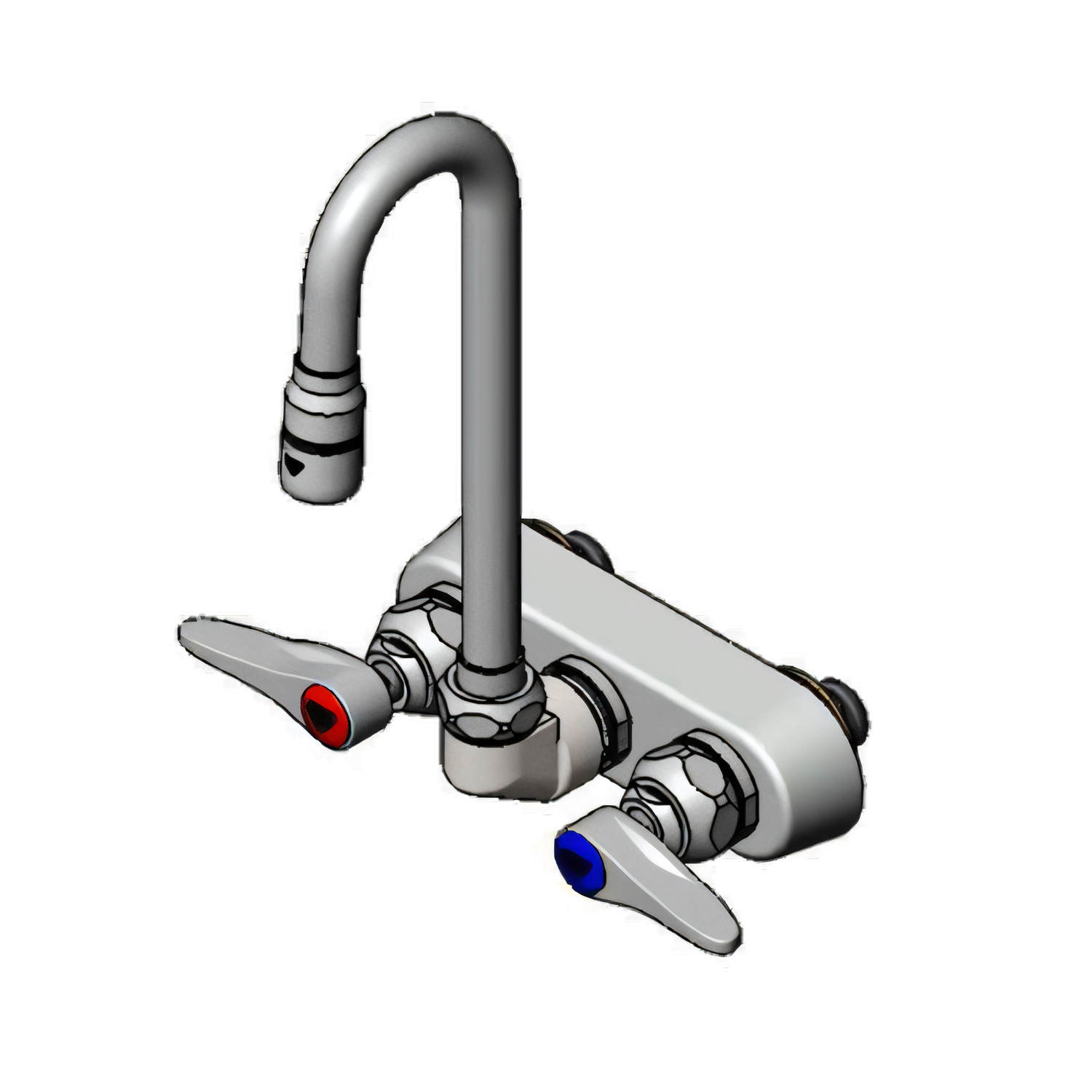Faucet Workboard, wall mount, 4" centers, 132X gooseneck, lever handles, quarter-turn Eterna cartridges, low lead, ADA Compliant