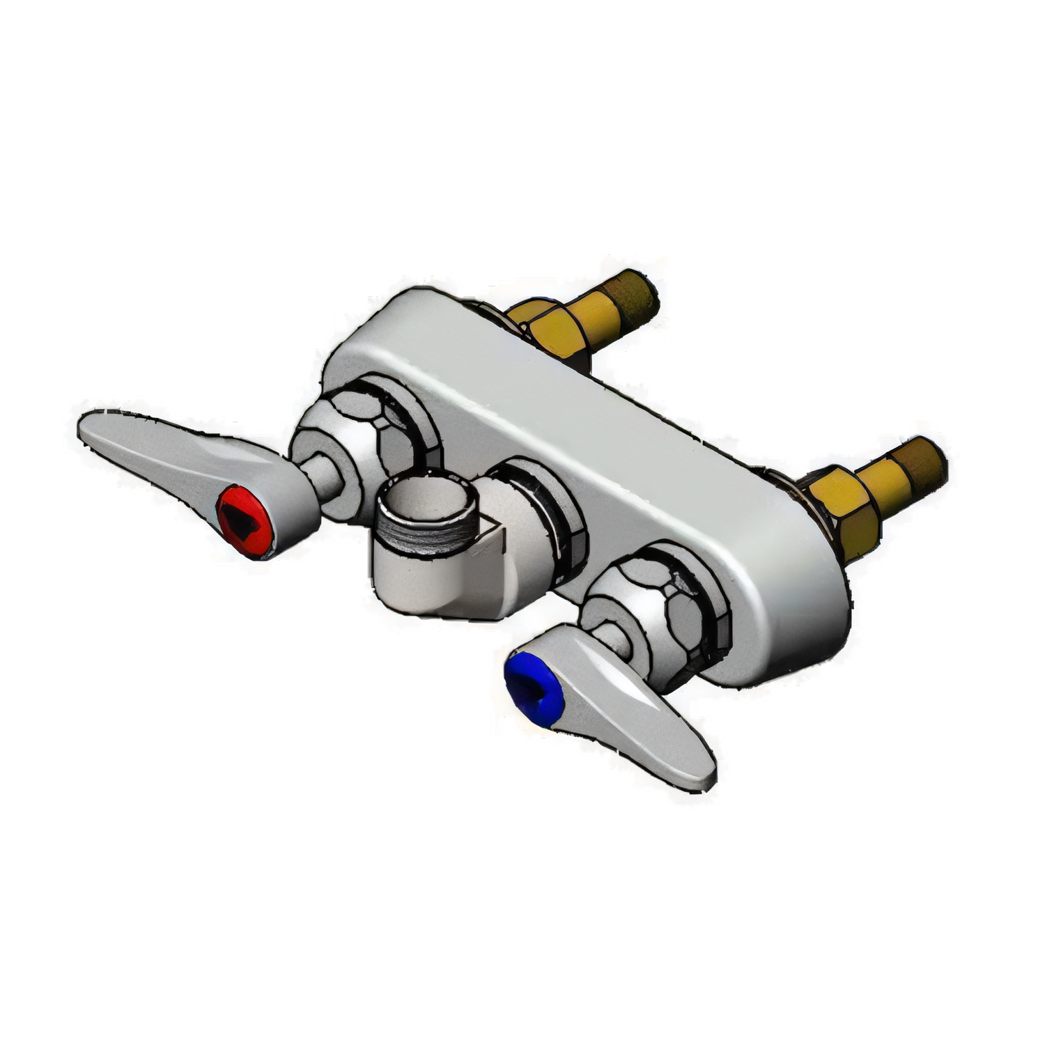 Faucet Workboard, less nozzle, splash mounted, bronze body, removable seats, 6-1/2"W x 2"H chrome-plated escutcheon, 4" centers, 1/2" NPT male inlets, quarter-turn Eterna cartridges, low lead, ADA Compliant