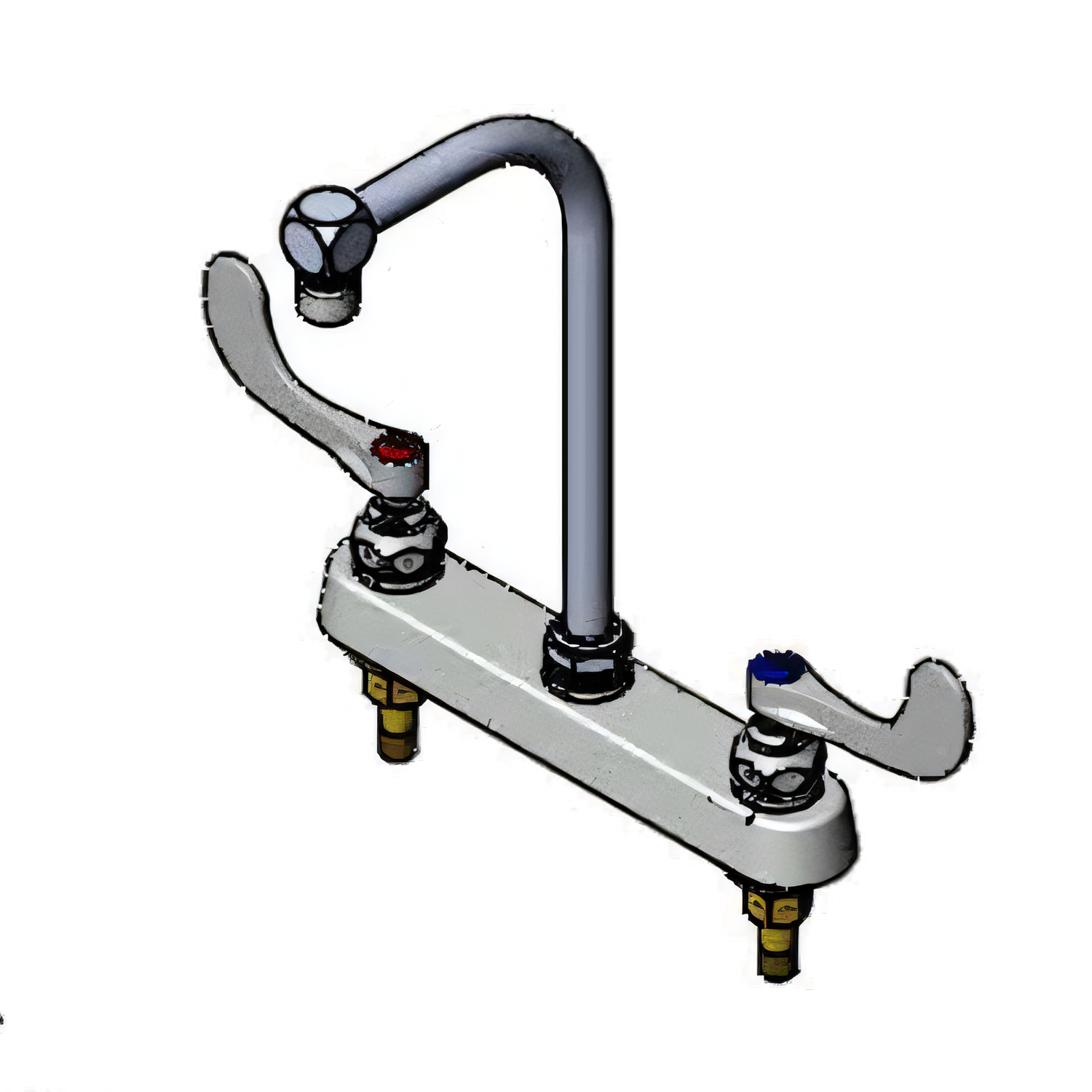 Workboard Faucet, deck mount with 8" centers, quarter-turn Eterna cartridges with spring checks, 4" wrist handles with color-coded indexes, 5-1/2" swivel gooseneck nozzle with 2.2 GPM Series 1 aerator (B-0199-01), includes tailpieces & nuts for 1/4" NPT male connection, chrome-plated brass faucet body, 1/2" NPT male inlets, CSA, ADA Compliant