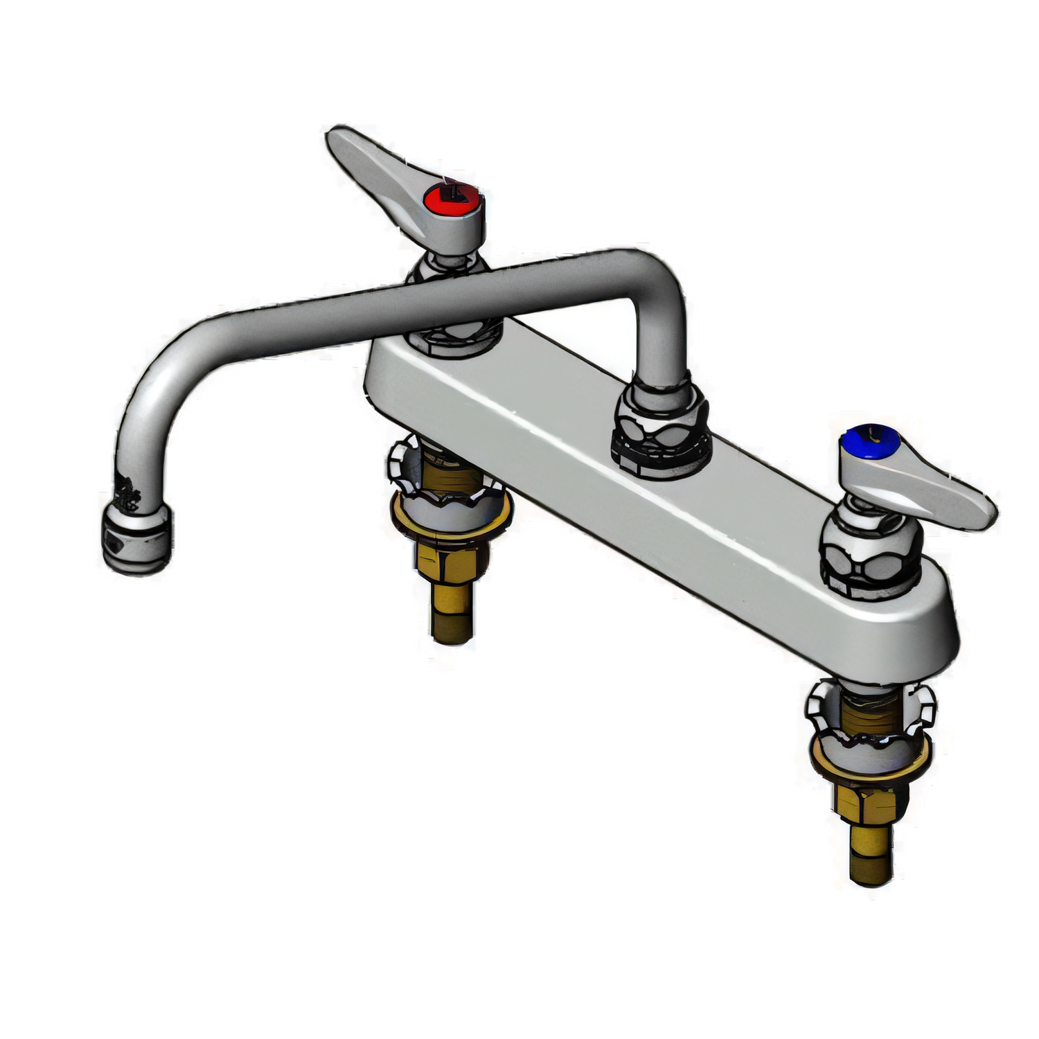 Faucet, 10" swing nozzle, deck mounted, 2" IPS shanks for mounting on thicker surfaces, quarter-turn Eterna cartridges, lever handles, low lead, ADA Compliant