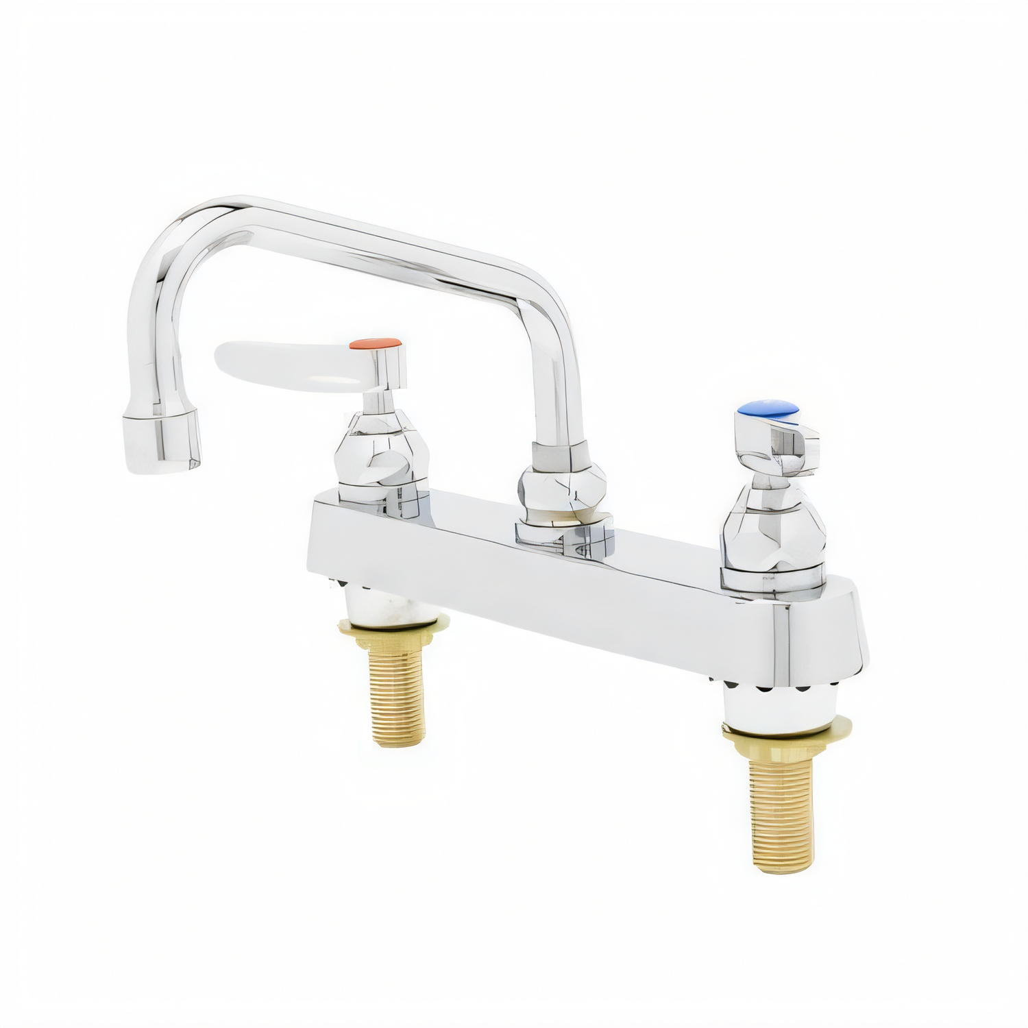 Workboard Faucet, deck mount, 8" centers, 10" swing nozzle with 2.2 GPM VR aerator, quarter-turn Cerama cartridges with spring checks, lever handles with color-coded indexes, 1/2" NPSM extended male inlets, low lead, cCSAus, ADA Compliant