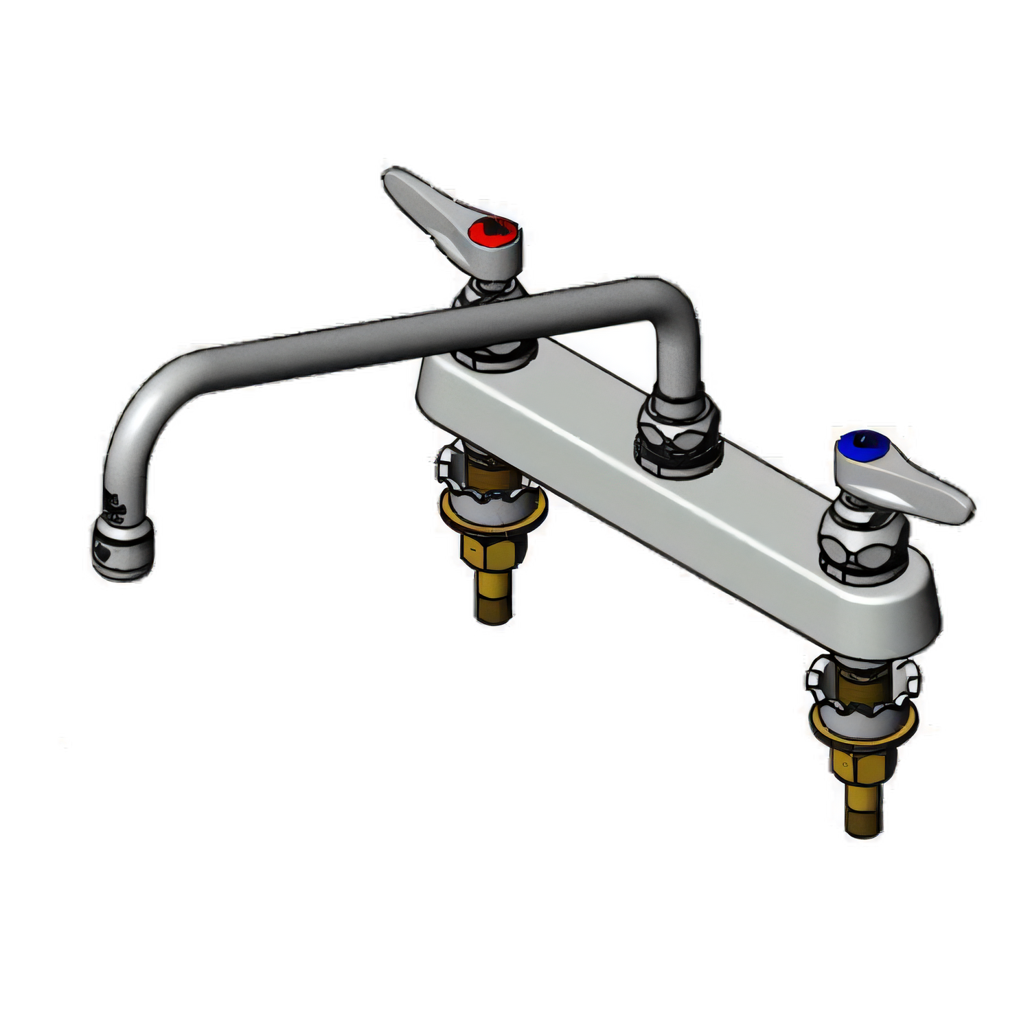 Faucet, 12" swing nozzle, deck mounted, 2" IPS shanks for mounting on thicker surfaces, quarter-turn Eterna cartridges, lever handles, low lead, ADA Compliant
