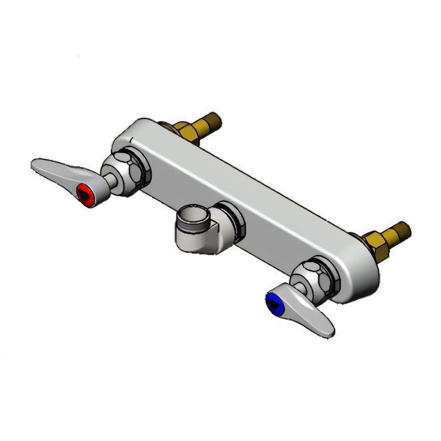 Faucet Workboard, less nozzle, splash mounted, bronze body, removable seats, 10-1/2"W x 2"H chrome-plated escutcheon, 8" centers, 1/2" NPT male inlets, quarter-turn Eterna cartridges, low lead, ADA Compliant