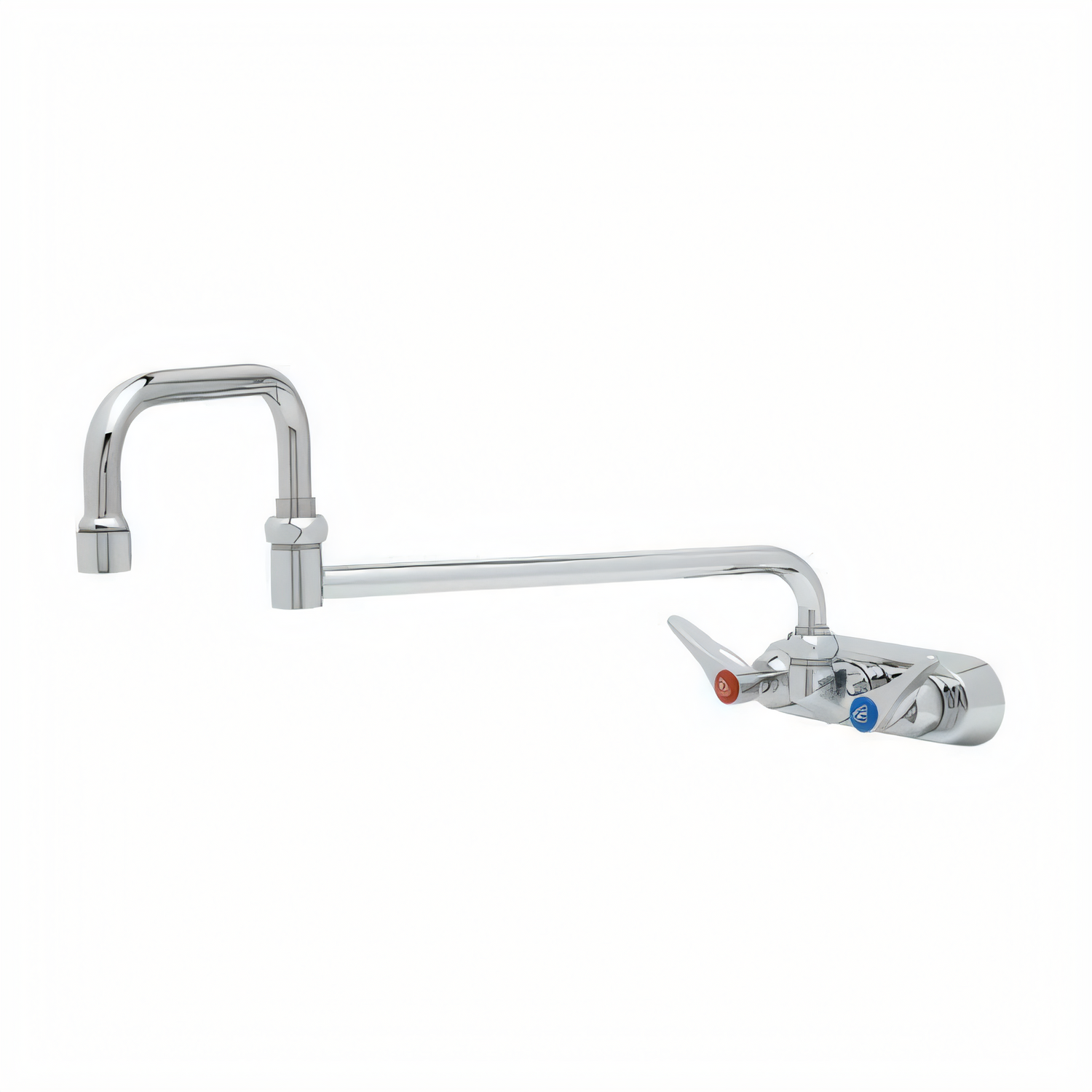 Workboard Faucet, wall mount, 4" centers, 18" double joint swing nozzle with 2.2 GPM aerator, quarter-turn Cerama cartridges with check valves, lever handles with color-coded indexes, 1/2" NPT male inlets, low lead, cCSAus, NSF, ADA Compliant