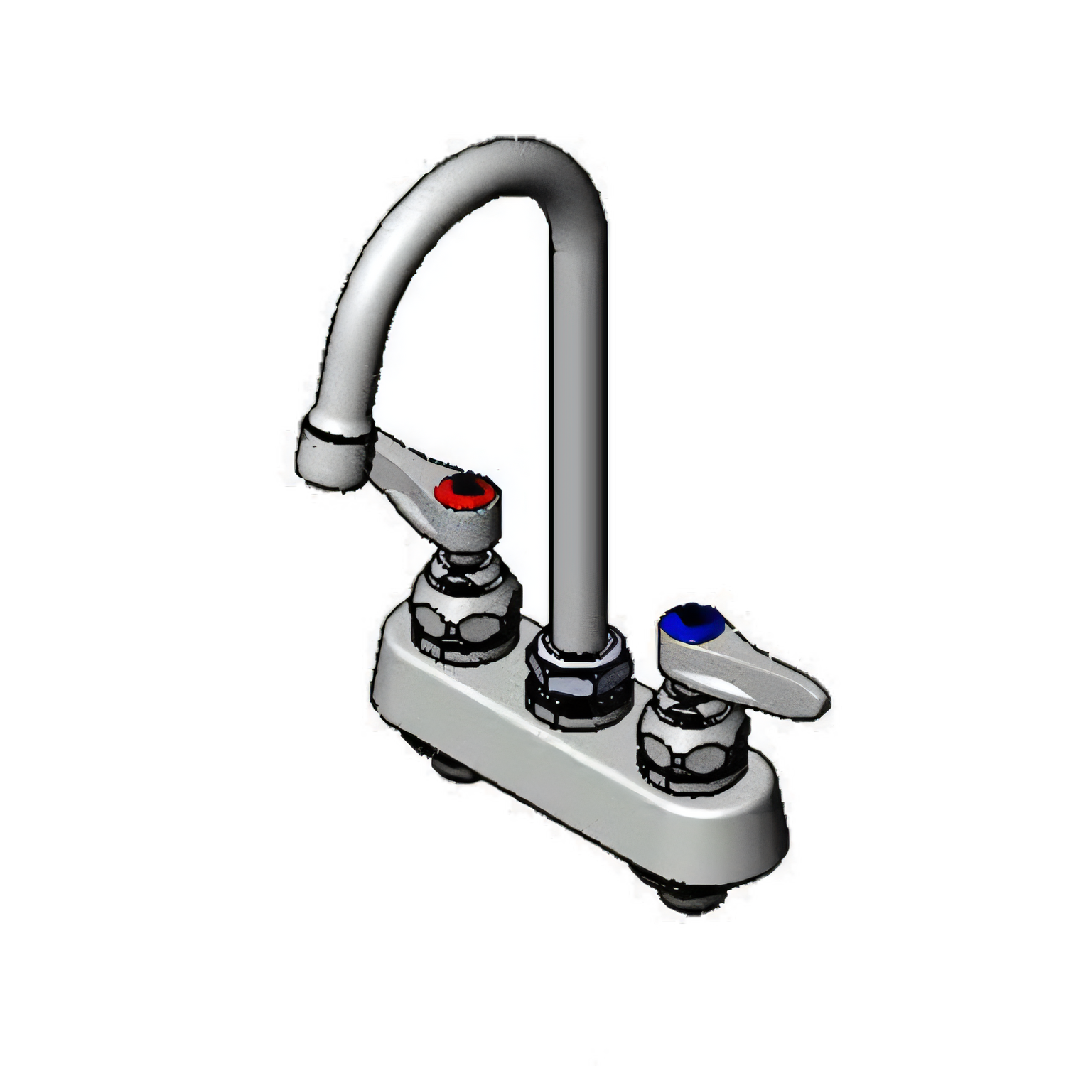 Workboard/Bar Sink Faucet, deck mount, 4" centers, 5" swivel gooseneck nozzle, 2.2 GPM aerator, 1/2" NPT, quarter-turn Eterna cartridges, lever handles, low lead, ADA Compliant