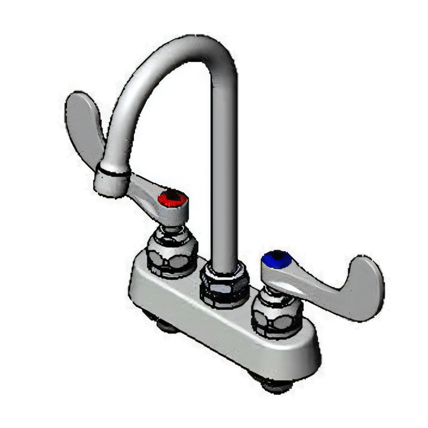 Workboard/Bar Sink Faucet, deck mount, 4" centers, 5" swivel gooseneck nozzle, 4" wrist handles, 2.2 GPM aerator, 1/2" NPT, quarter-turn Eterna cartridges, low lead, ADA Compliant