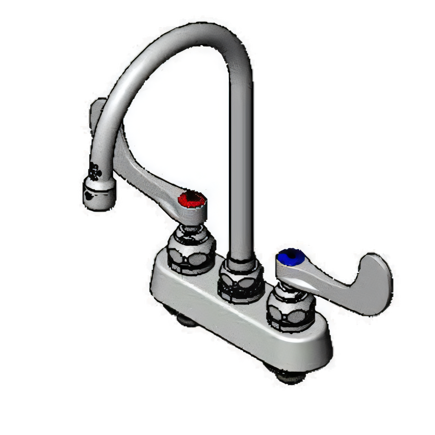 Faucet Workboard, deck mount, 4" center, swivel gooseneck, wrist action handles, quarter-turn Eterna cartridges, low lead, ADA Compliant
