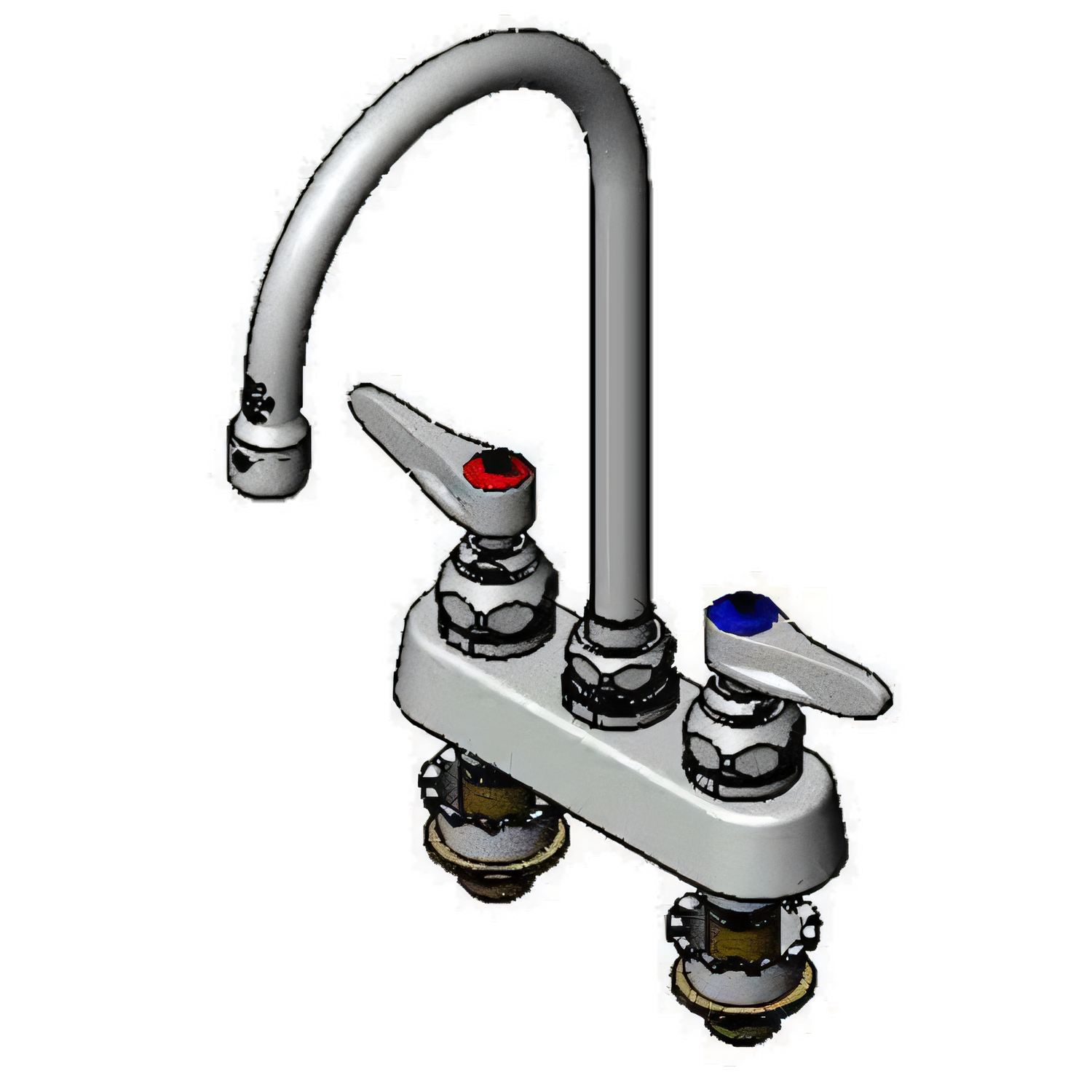 Faucet, gooseneck nozzle, deck mount, 2" IPS shanks for mounting on thicker surfaces, quarter-turn Eterna cartridges, lever handles, low lead, ADA Compliant