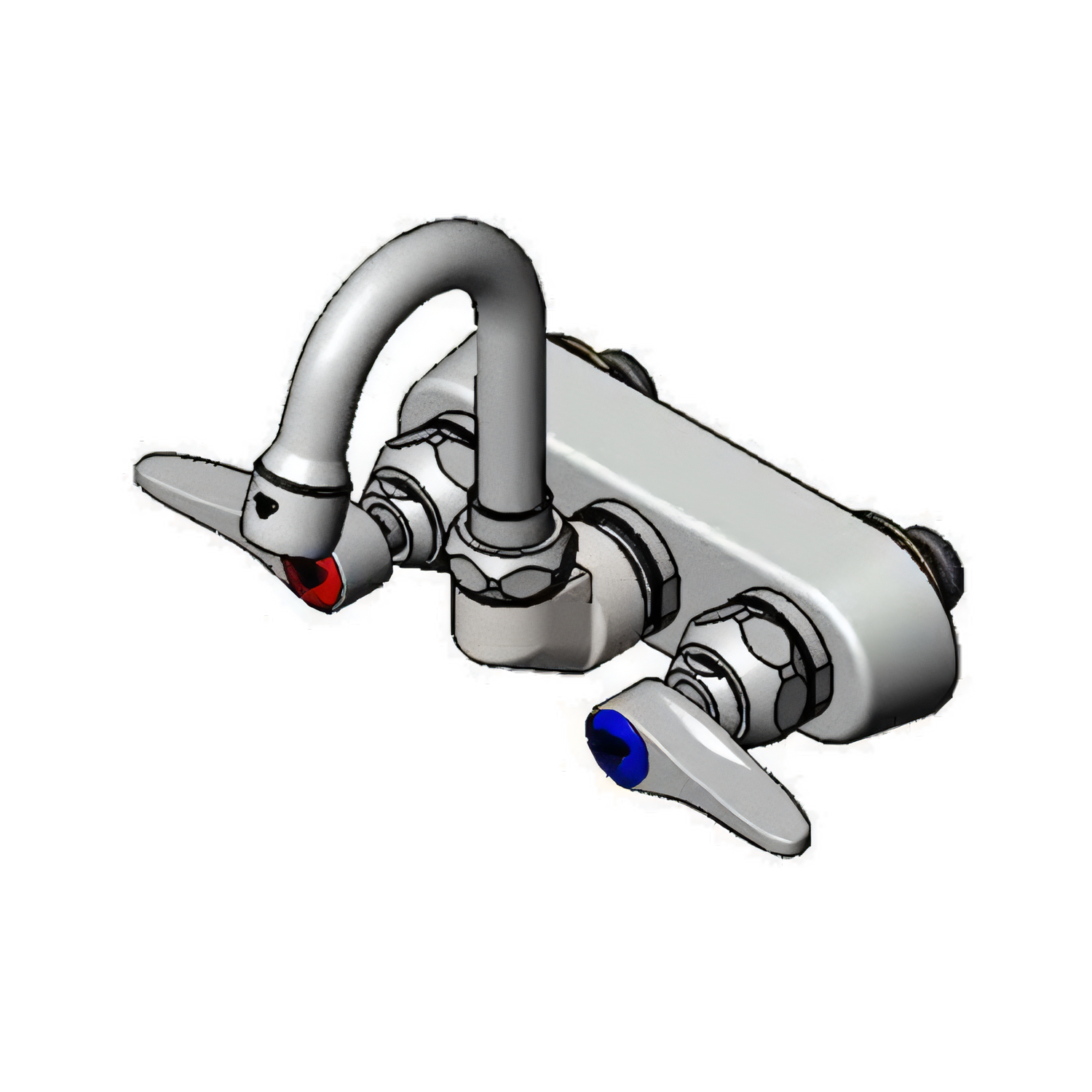 Workboard Faucet, wall mount, 4" centers, 2-15/16" swivel gooseneck faucet (131X-A22) (includes lock washer to convert to rigid), 2.2 GPM aerator, quarter-turn Eterna cartridges with spring checks, lever handles with color coded indexes, polished chrome-plated escutcheon, 1/2" NPT male inlets, ADA Compliant (replaces B-1146-01A)