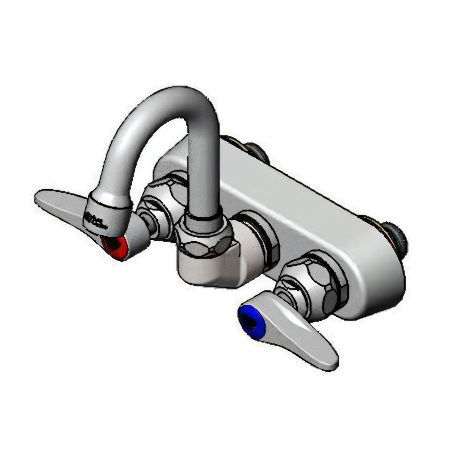 Workboard Faucet, wall mount, 4" centers, 2-15/16" swivel gooseneck (includes lockwasher to convert to rigid), 1.5 GPM aerator, quarter-turn Eterna cartridges with spring checks, lever handles with color coded indexes, 1/2" NPT male inlets, ADA Compliant