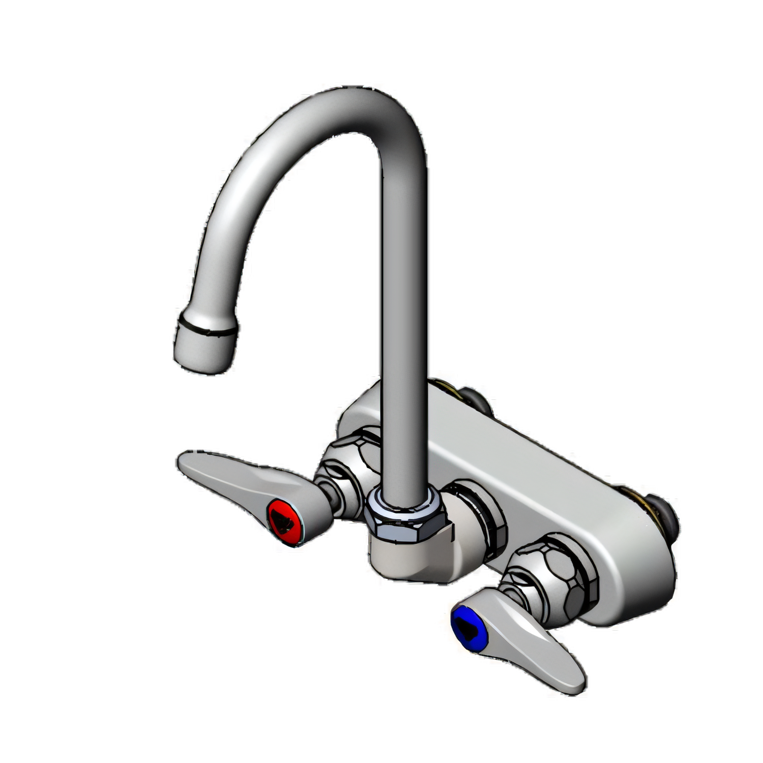 Workboard Faucet, wall mount, 4" centers, 4-3/8" swivel gooseneck (includes lockwasher to convert to rigid), 2.2 GPM aerator, quarter-turn Eterna cartridges with spring checks, lever handles with color coded indexes, 1/2" NPT male inlets, ADA Compliant
