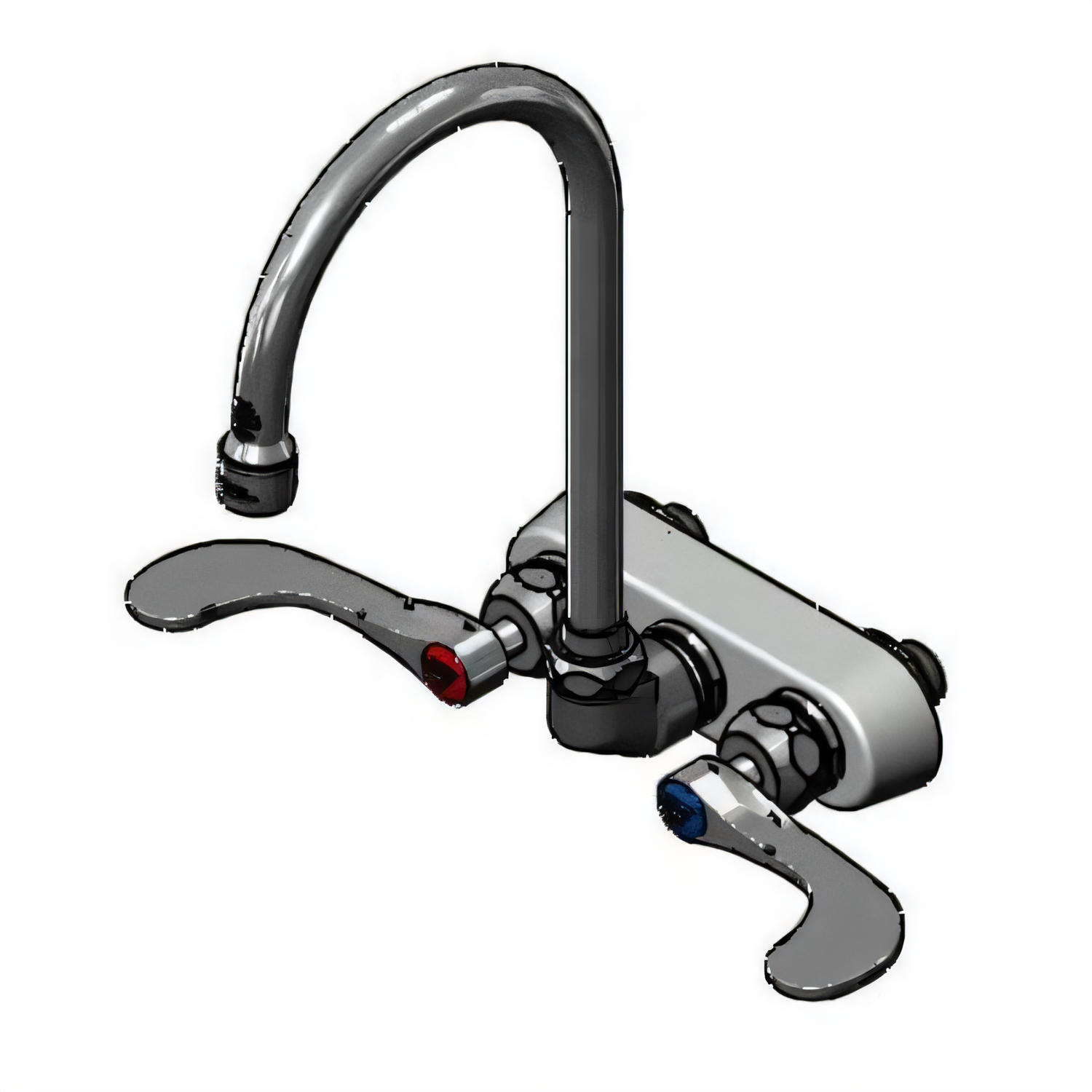 Workboard Faucet, wall mount, 4" centers, 5-3/4" swivel gooseneck nozzle (includes lockwasher to convert to rigid), 1.5 GPM aerator, quarter-turn Cerama cartridges with check valves,, 4" wrist blade handles with color coded indexes, 1/2" NPT male inlets, ADA Compliant