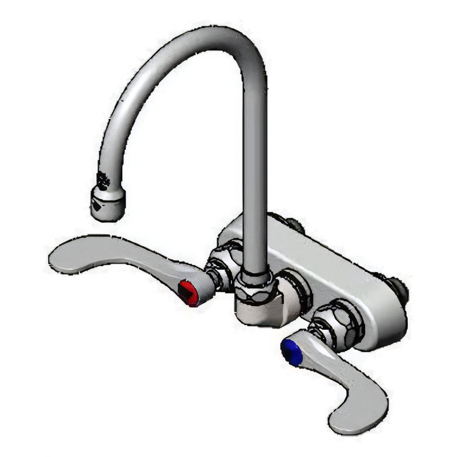 Workboard Faucet, wall mount, 4" centers, 5-3/4" swivel gooseneck nozzle (includes lockwasher to convert to rigid), 1.5 GPM aerator, quarter-turn Eterna cartridges with spring checks, 4" wrist blade handles with color coded indexes, 1/2" NPT male inlets, ADA Compliant