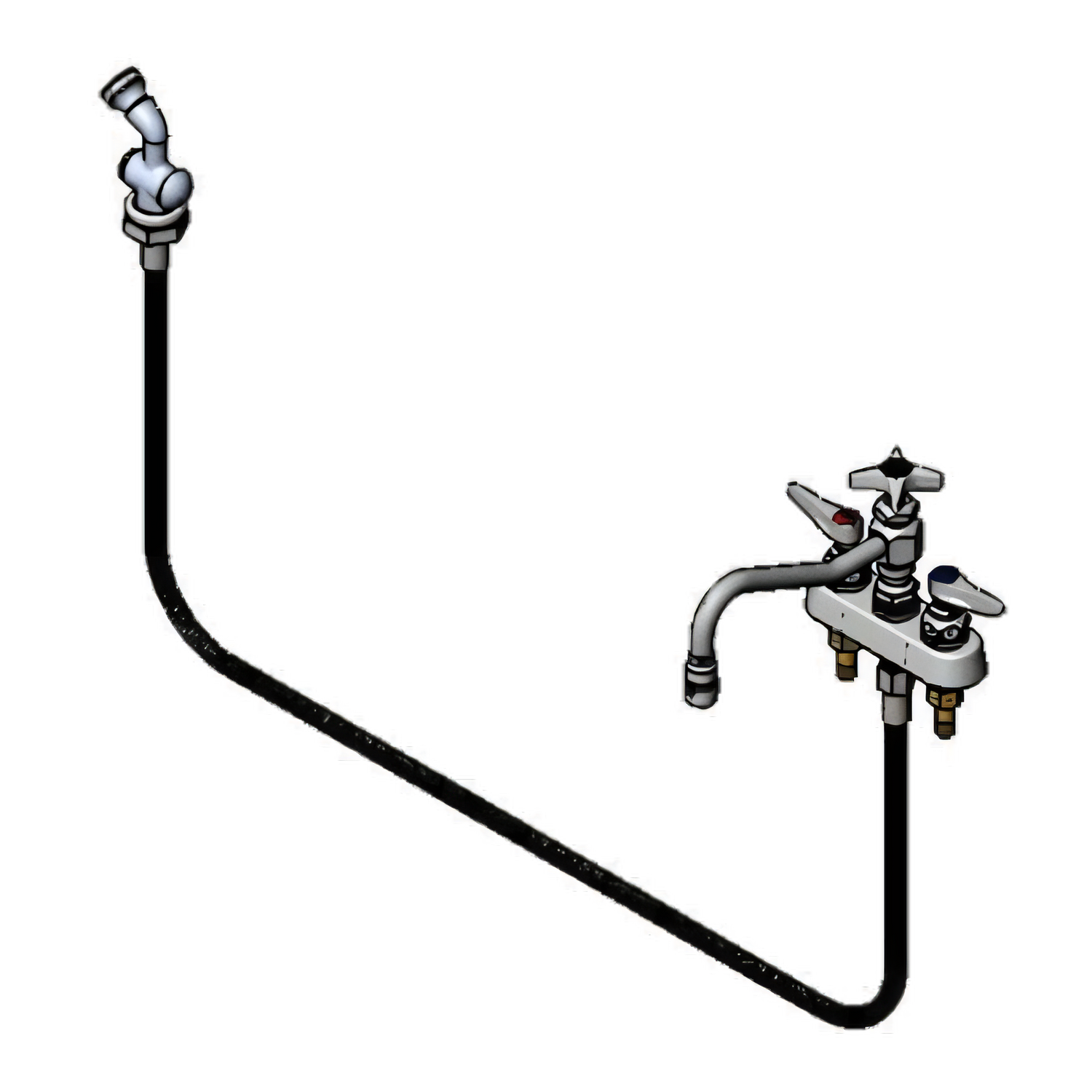 Faucet Workboard, 8" swing nozzle, deck mounted, bronze body, removable seats, 6-1/2"L x 2"W chrome-plated escutcheon, 4" centers, 1"L shanks, 1/2" IPS threads, flexible stainless steel hose with hose spray