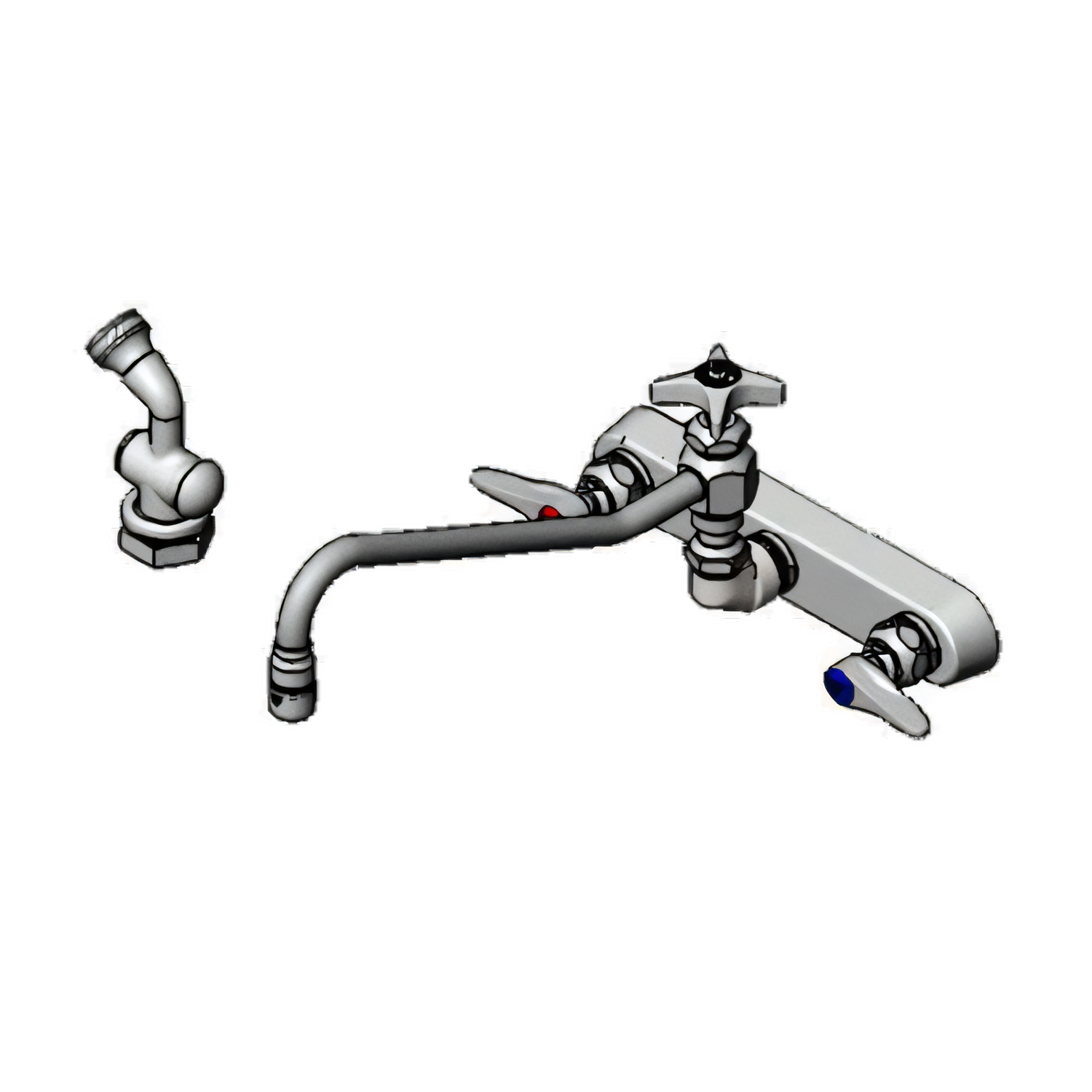 Faucet Workboard, 8" wall mount, 12" swing nozzle, diverter, hose, spray valve