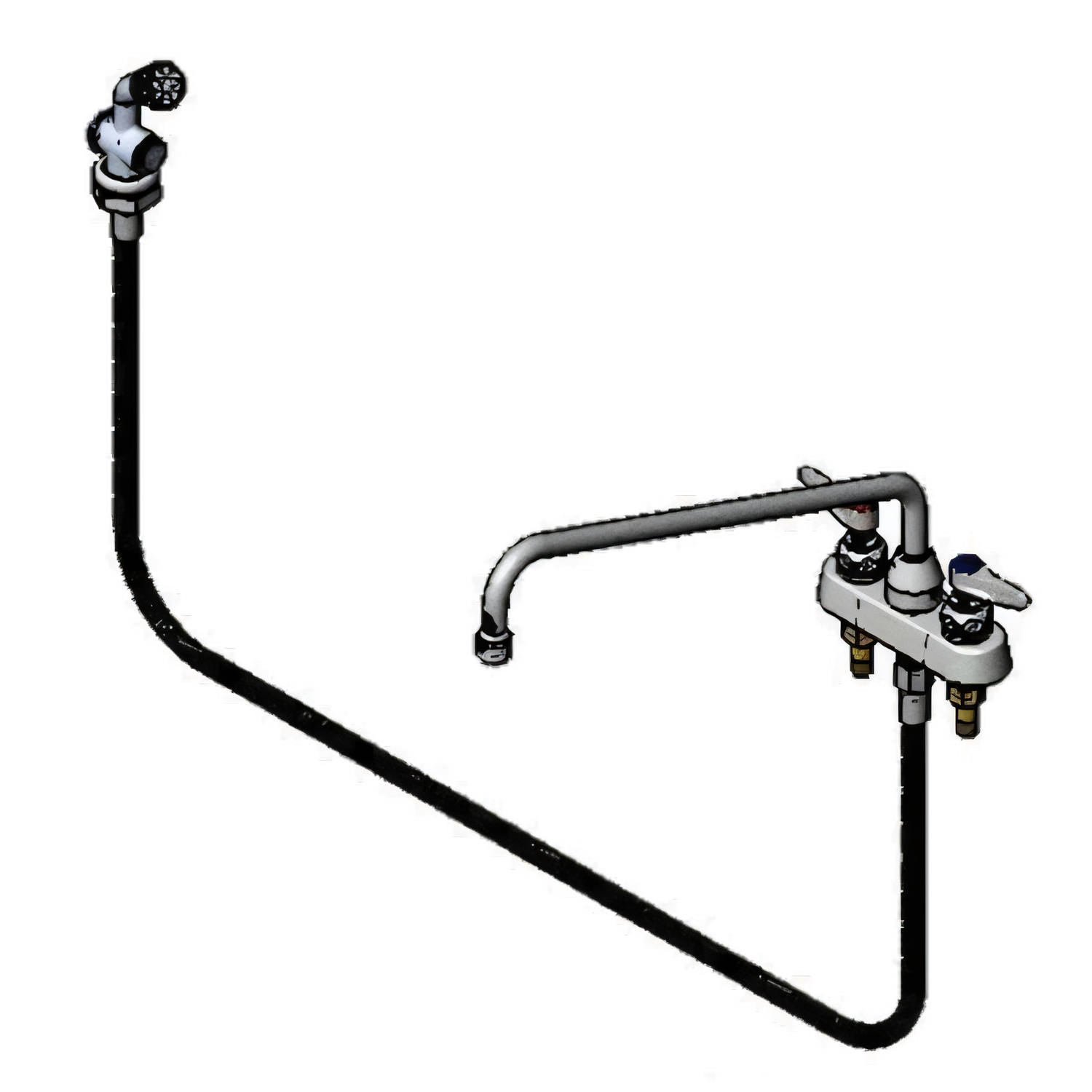 Faucet Workboard, deck mount, 4" centers, 16" swing nozzle, diverter, hose, side spray