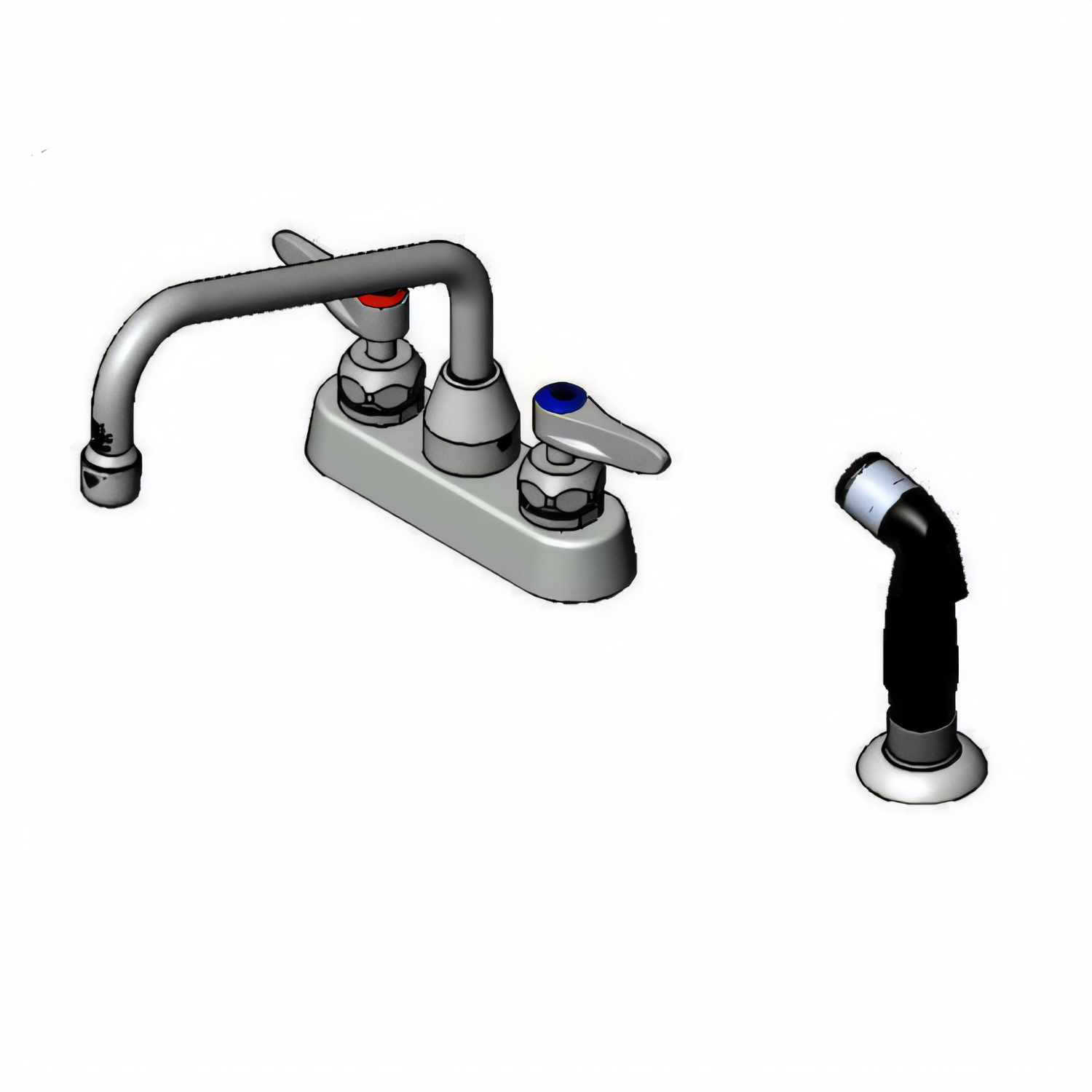 Workboard Mixing Faucet, deck mount, 4" centers, 8" swing nozzle with 2.2 GPM aerator, sidespray with 4ft. vinyl hose and guide, quarter-turn Cerama cartridges with check valves, lever handles with color-coded indexes, 1/2" NPT male inlets, low lead, cCSAus, ADA Compliant