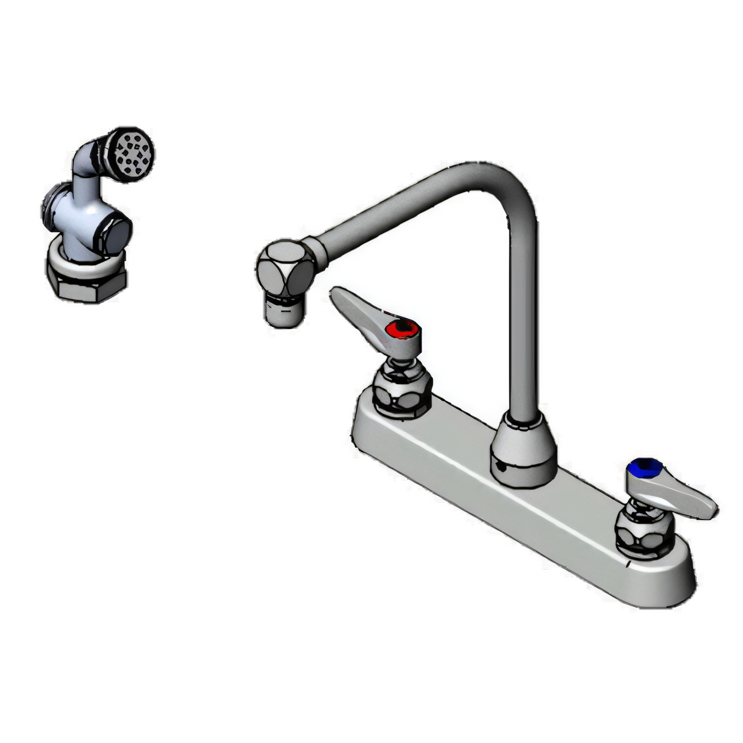 Faucet Workboard, deck mount, 8" c/c, swing nozzle, aerator, spray valve, hose