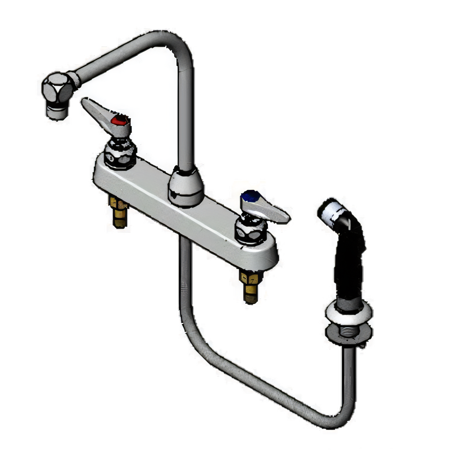 Faucet Workboard, deck mount, 8" center, swing gooseneck, aerator, side spray